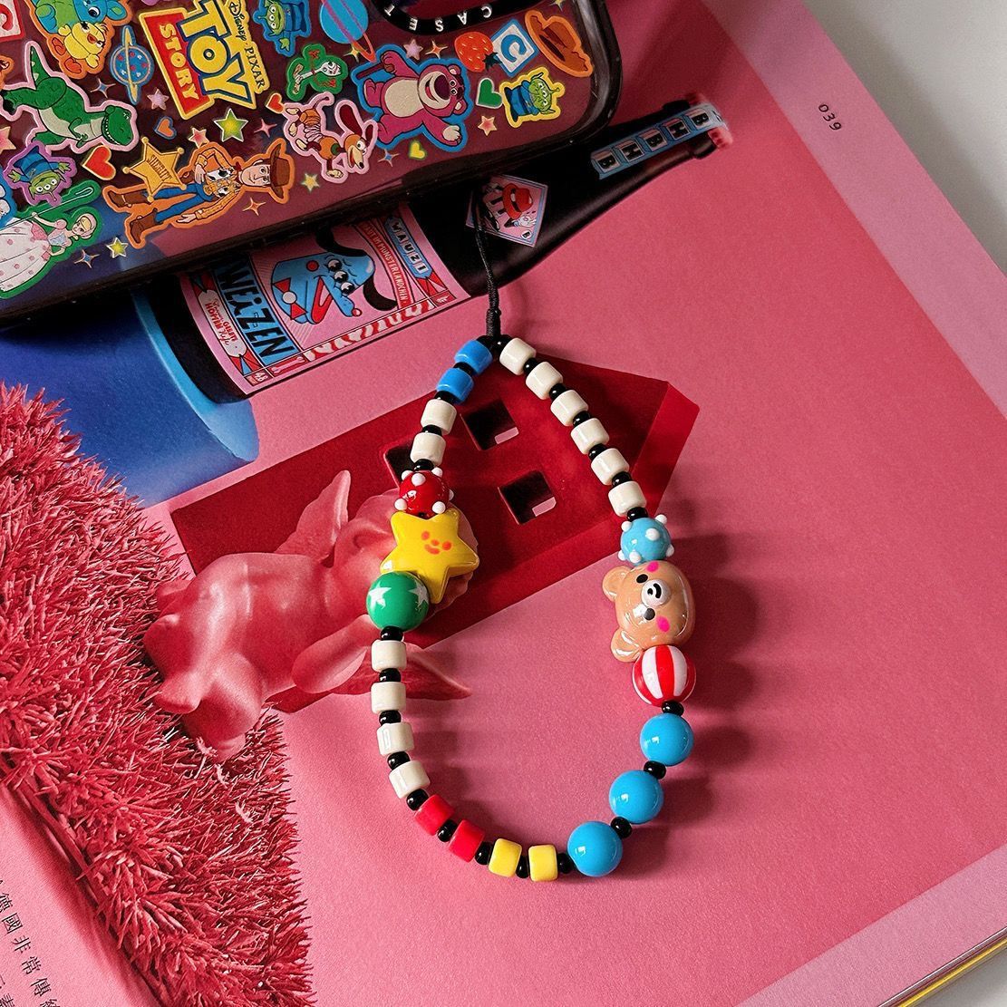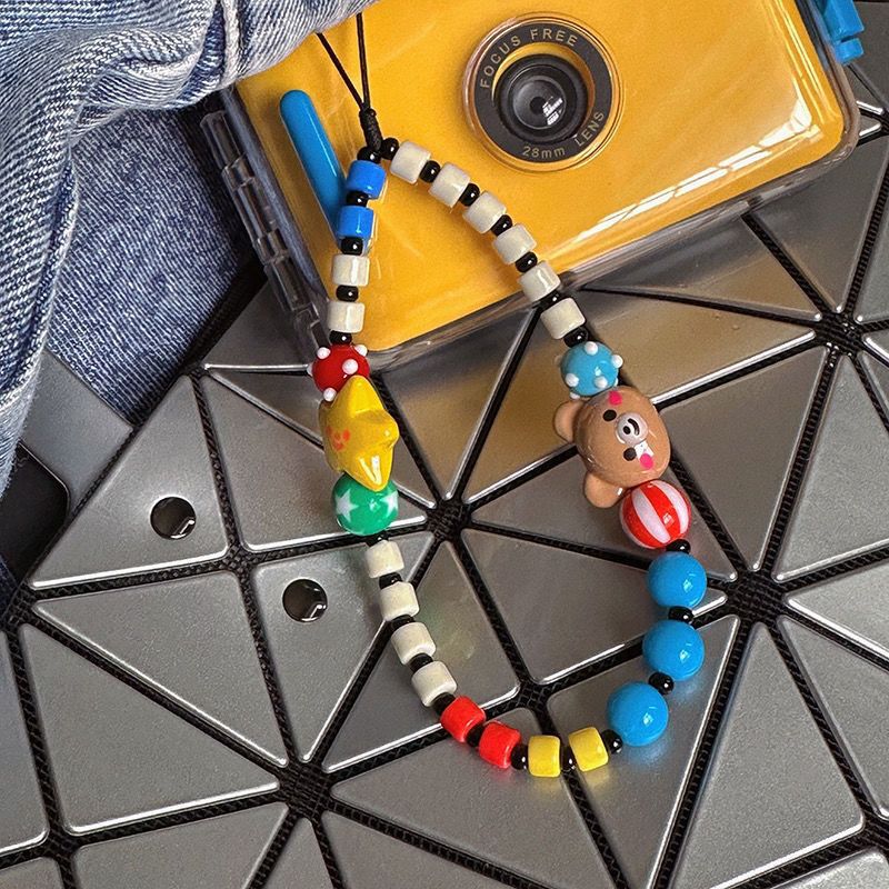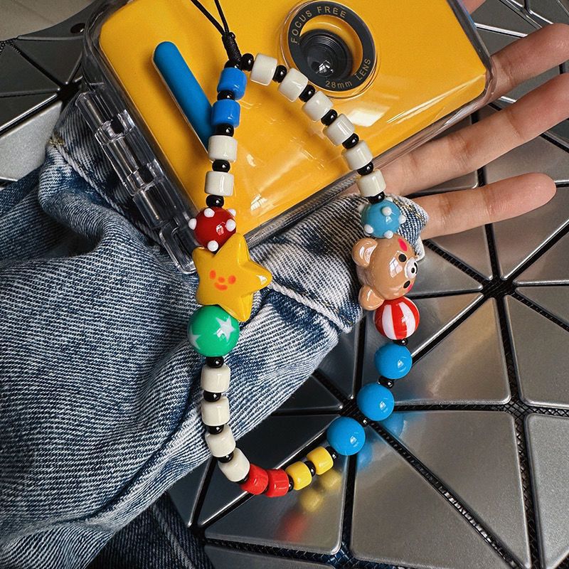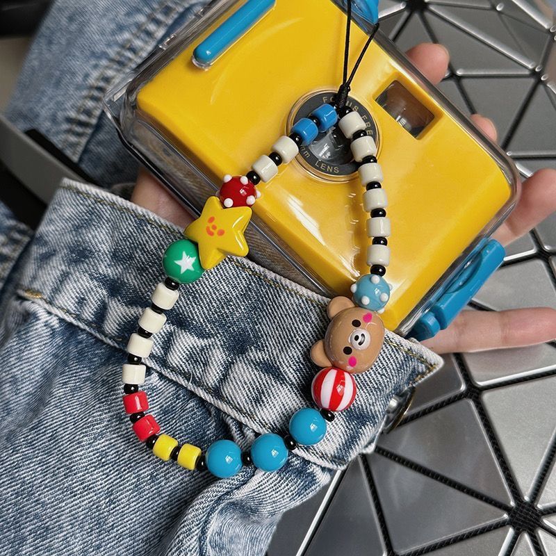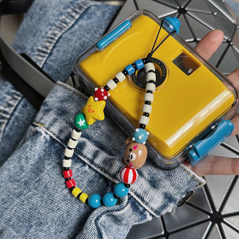 ins多巴胺小熊笑脸ccd挂绳手机壳挂绳链条拍立得防丢手绳DIY串珠