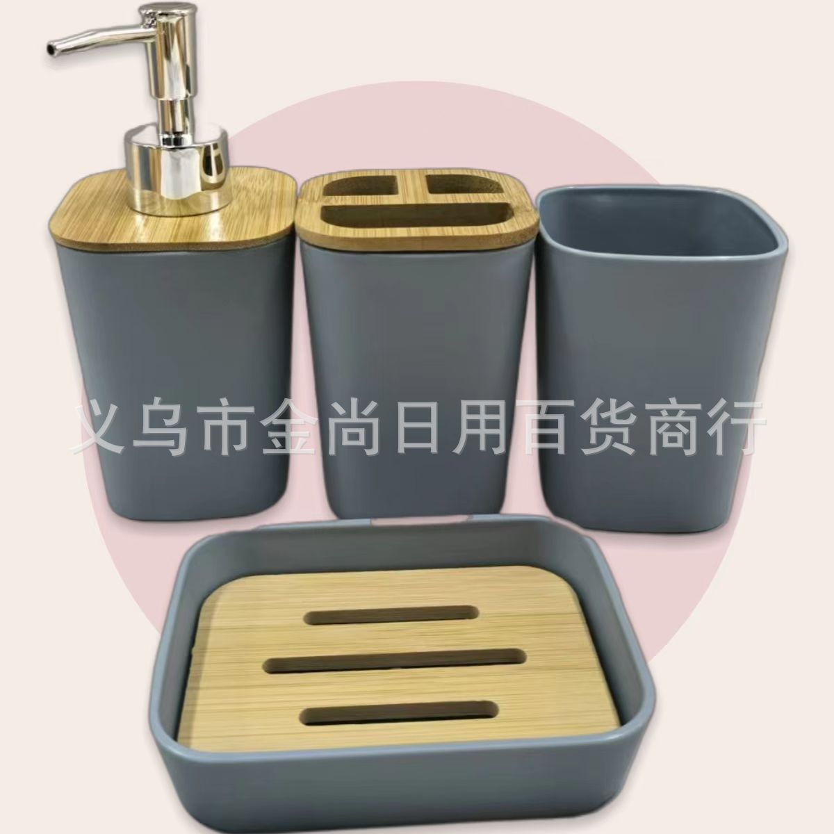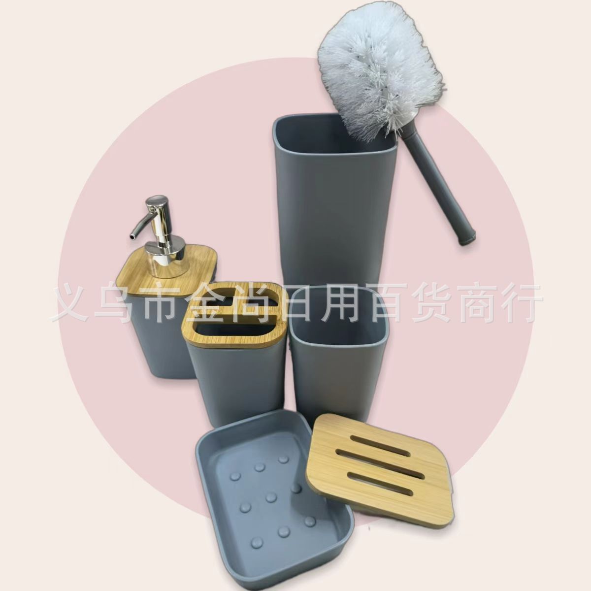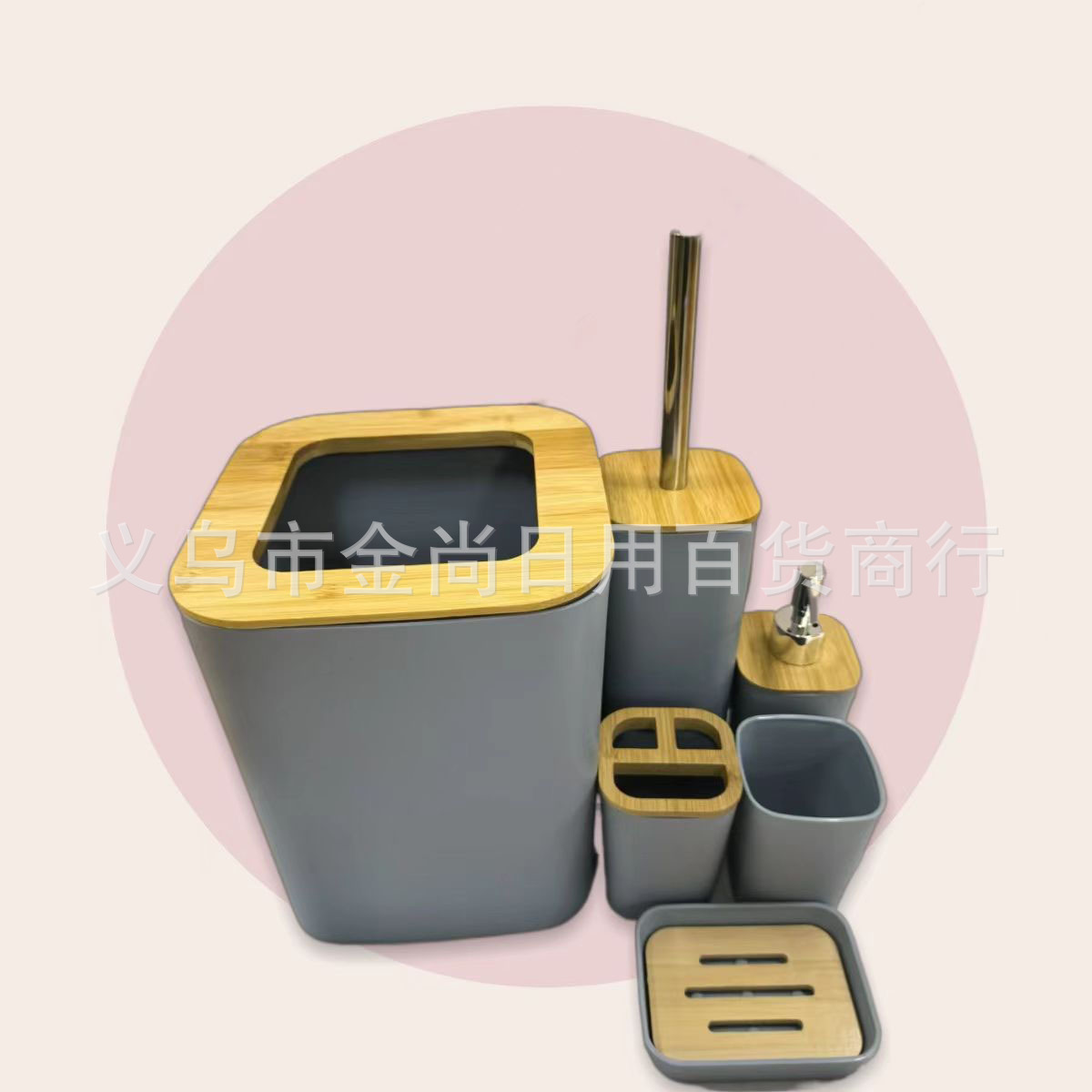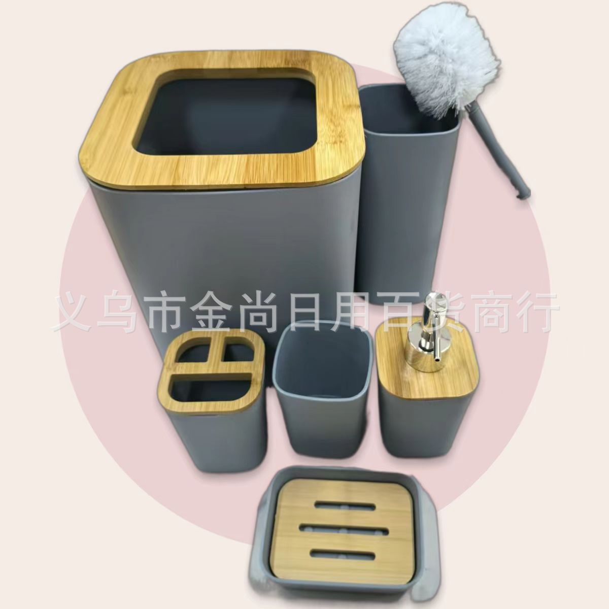 批发 酒店家用塑料浴室竹盖卫浴洗漱套装收纳洗漱用品六件套