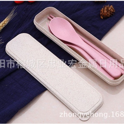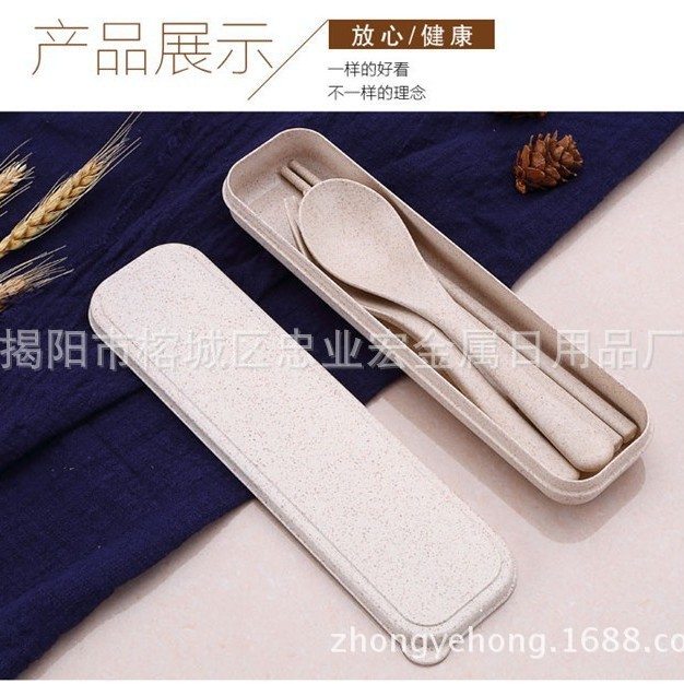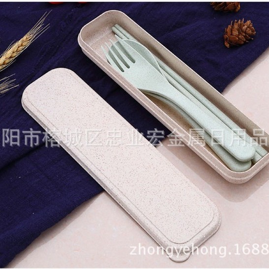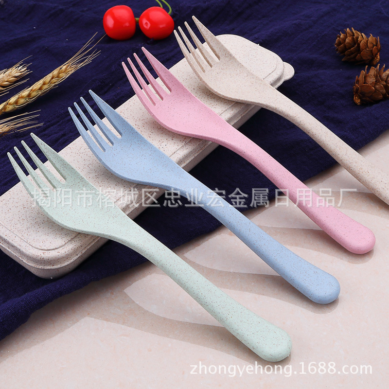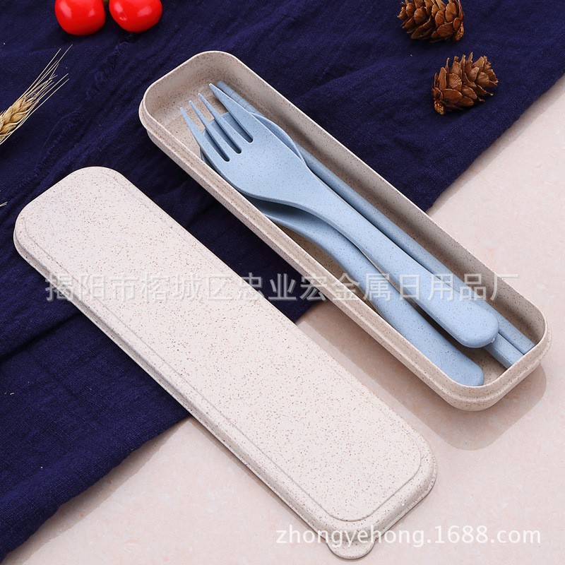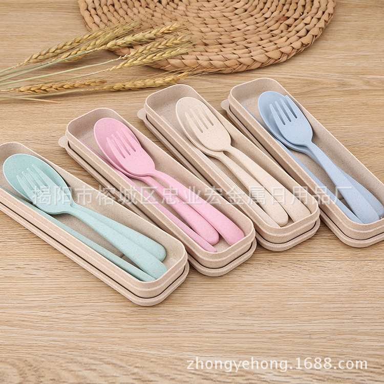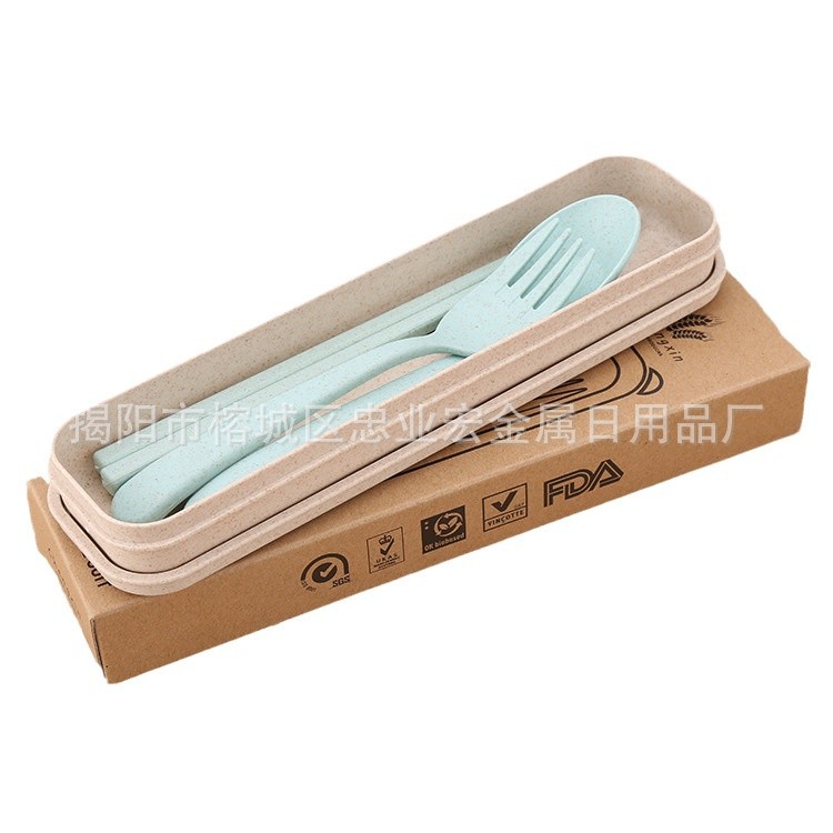 小麦秸秆儿童餐具三件套 便携餐具套装勺叉筷礼品套装