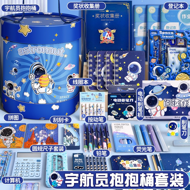 宇航员文具套装小学生学习用品六一礼物大礼包桶装礼盒男孩生日