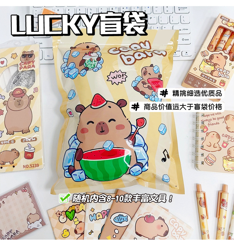 卡皮巴拉文具盲袋学生开学学习礼包礼品办公用品学生文具套装盲袋