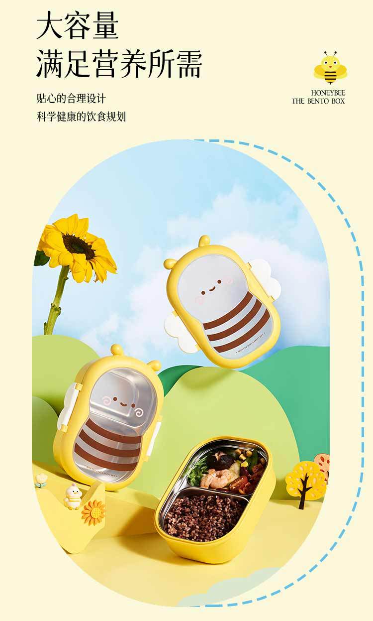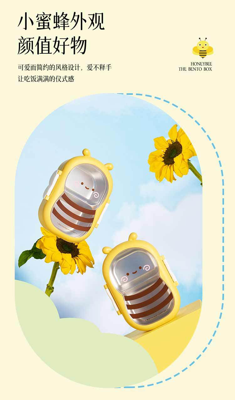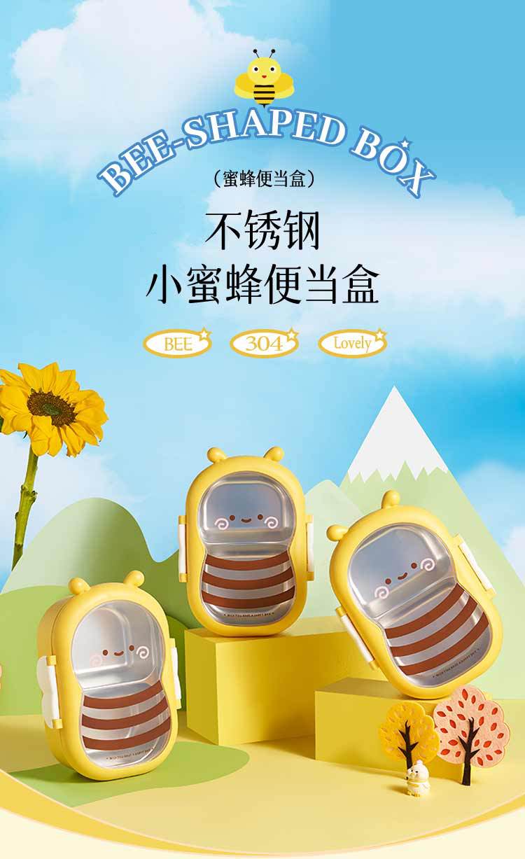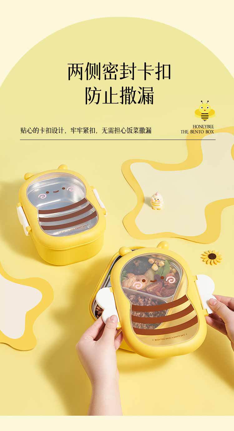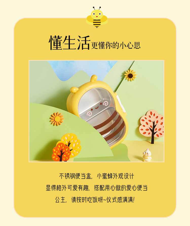 小蜜蜂上班族饭盒卡通不锈钢便当餐盒学生食堂专用上学盒保温分格