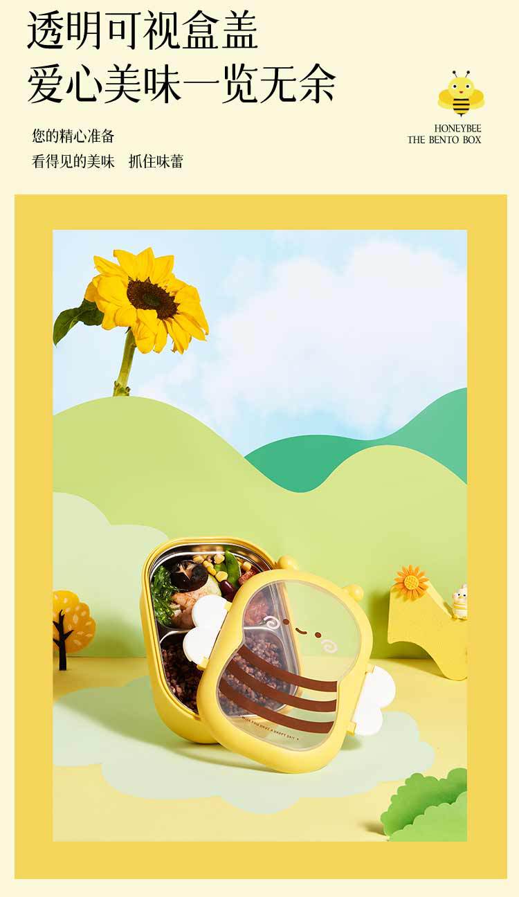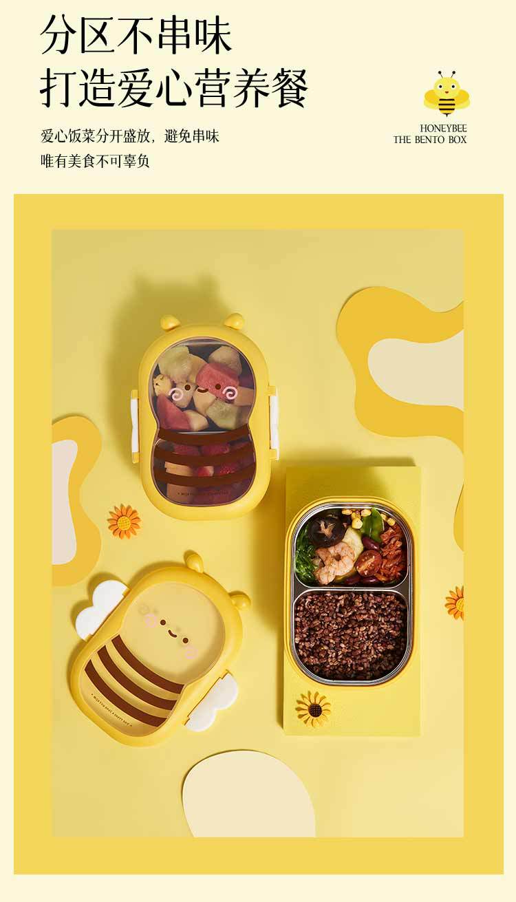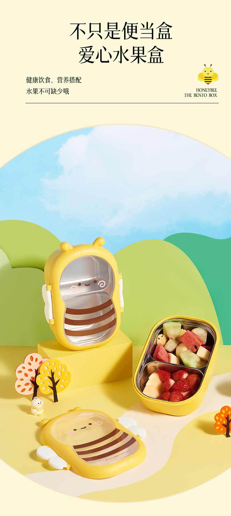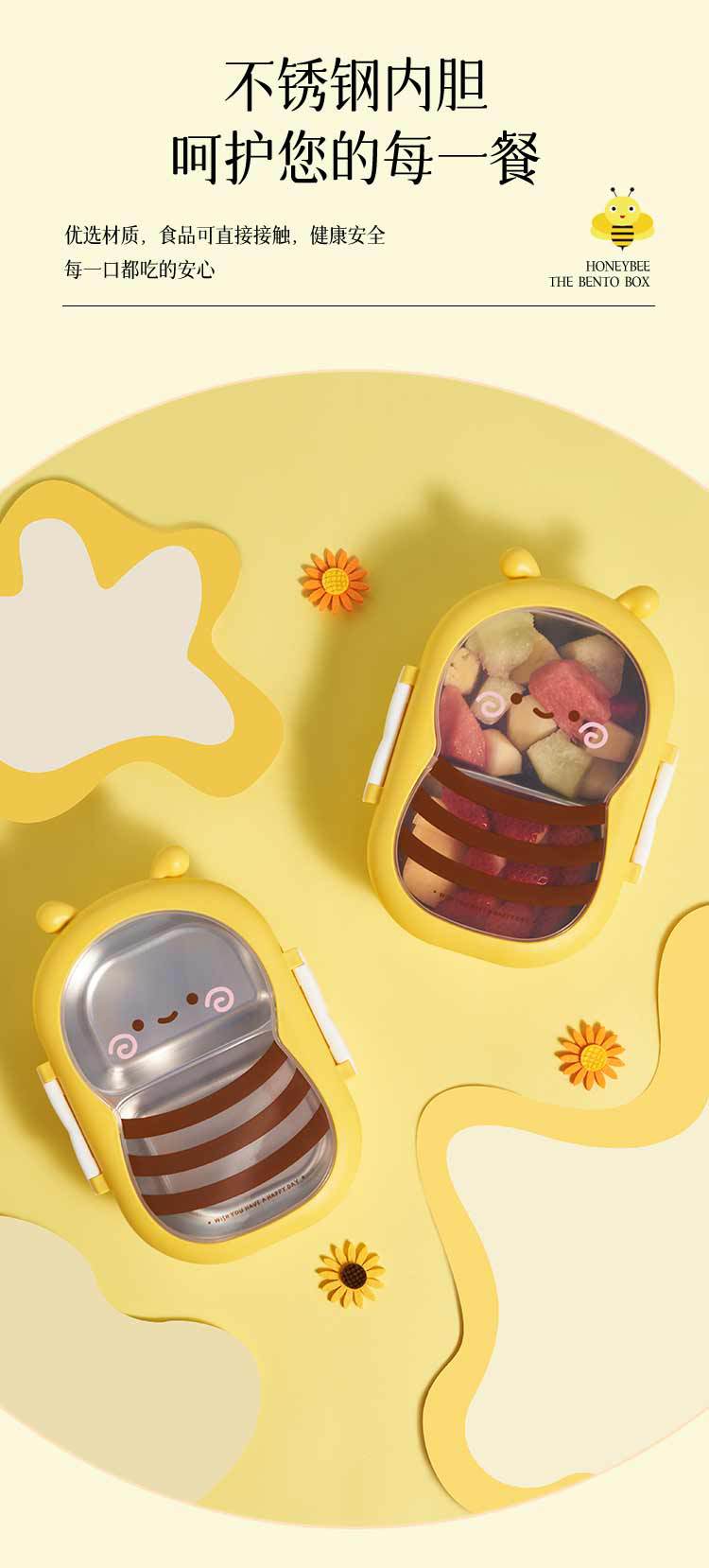 小蜜蜂上班族饭盒卡通不锈钢便当餐盒学生食堂专用上学盒保温分格