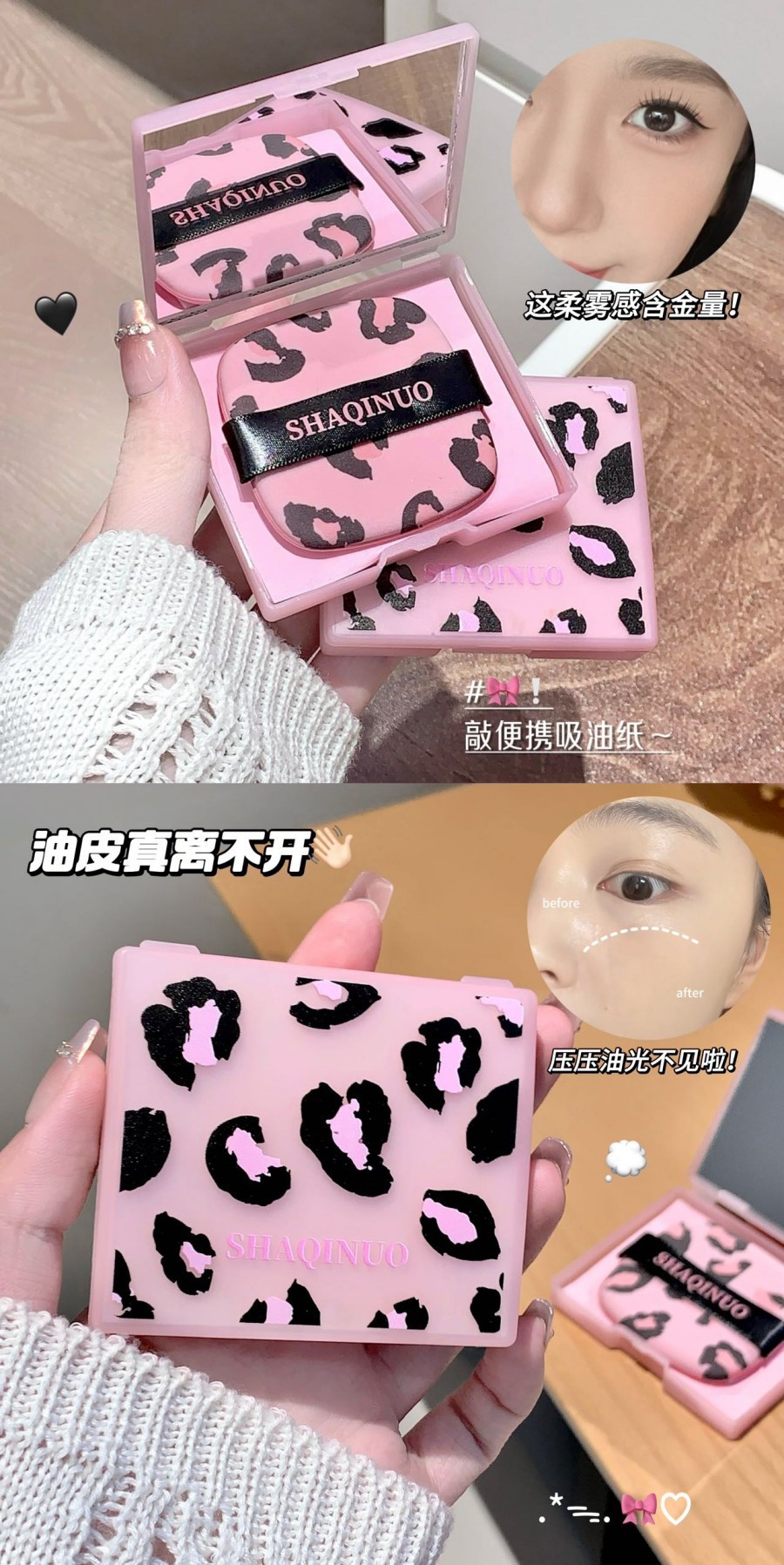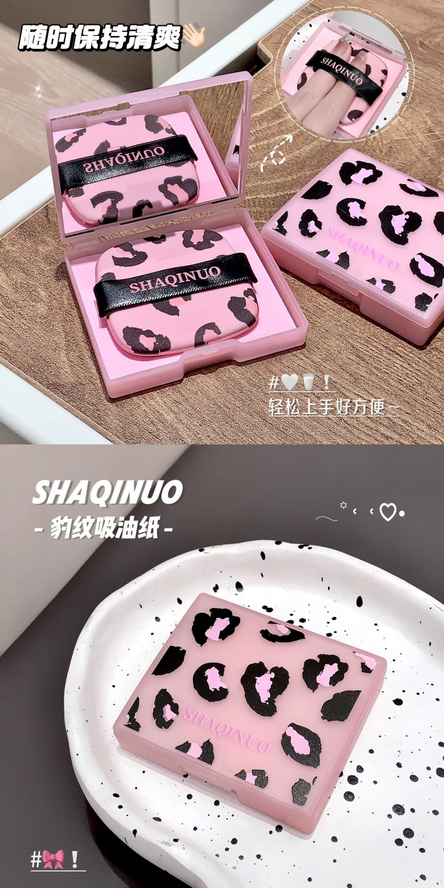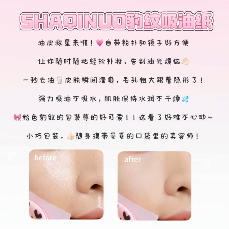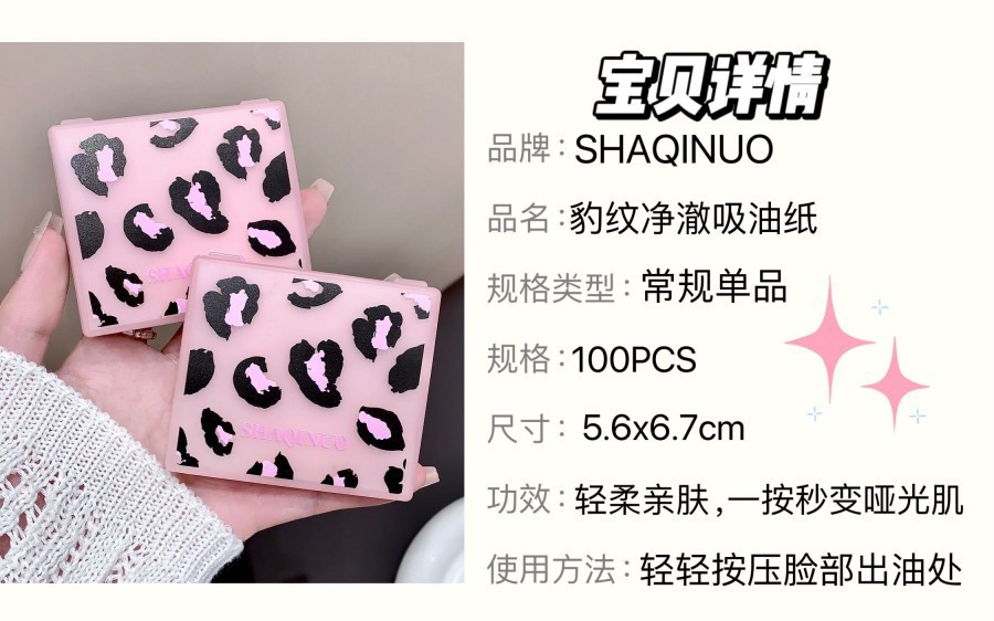 SHAQINUO莎琪诺豹纹净澈脸部吸油纸控油女便携式粉扑吸油面纸夏季