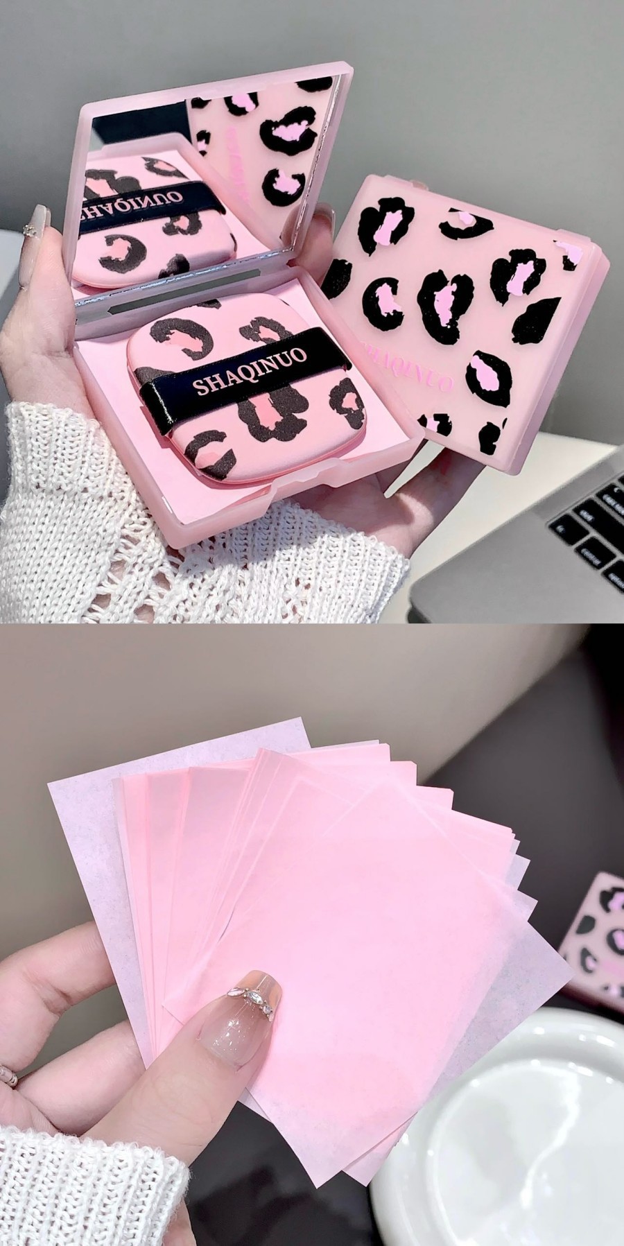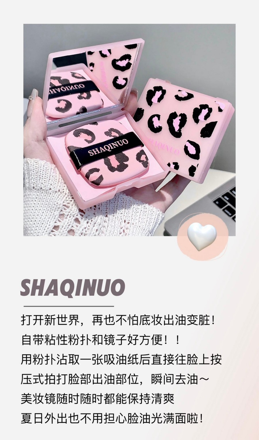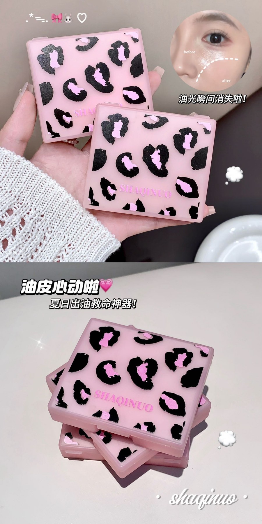 SHAQINUO莎琪诺豹纹净澈脸部吸油纸控油女便携式粉扑吸油面纸夏季