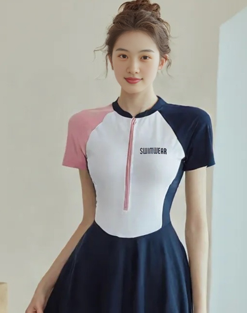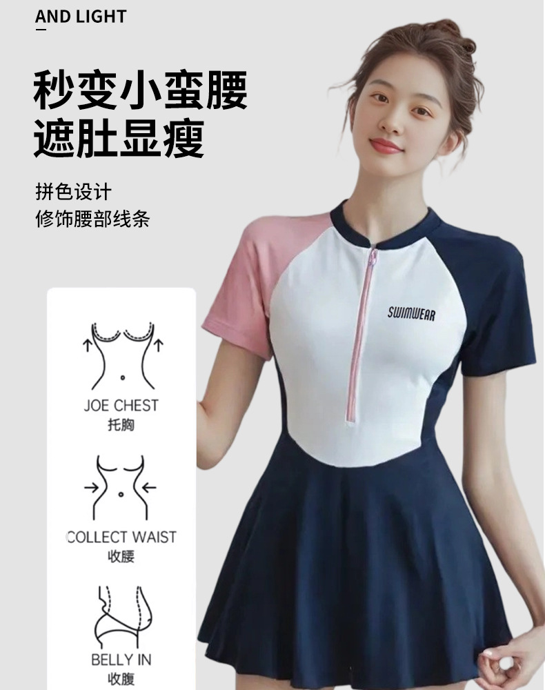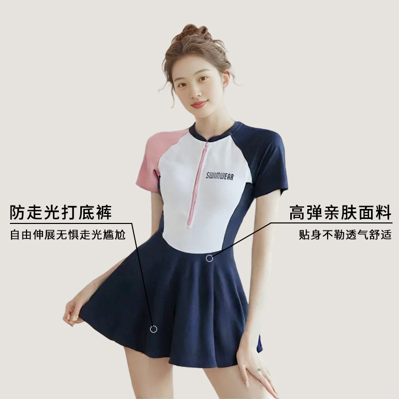 泳衣女夏季2025新款运动风保守连体裙式性感纯欲休闲爆款泳衣套装