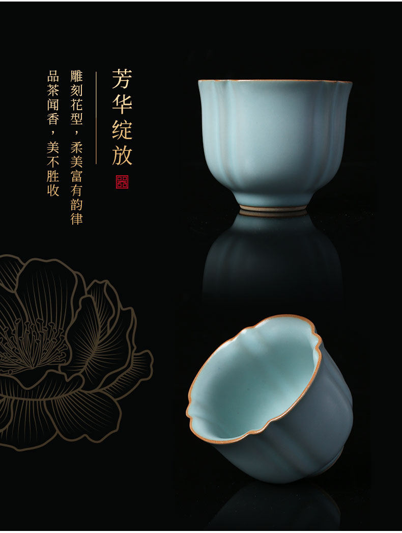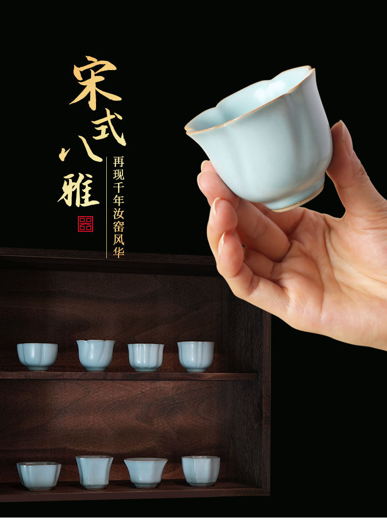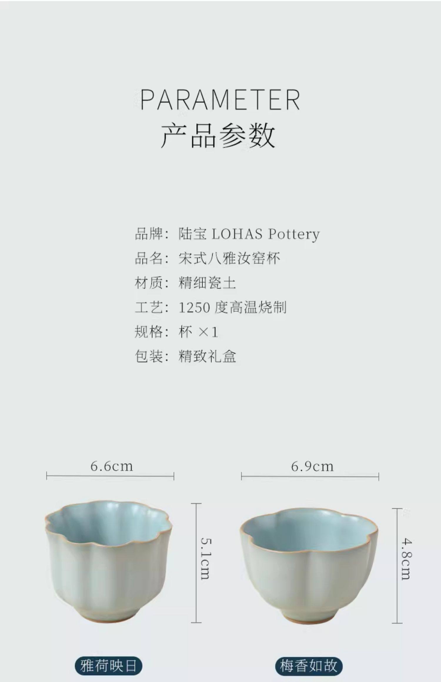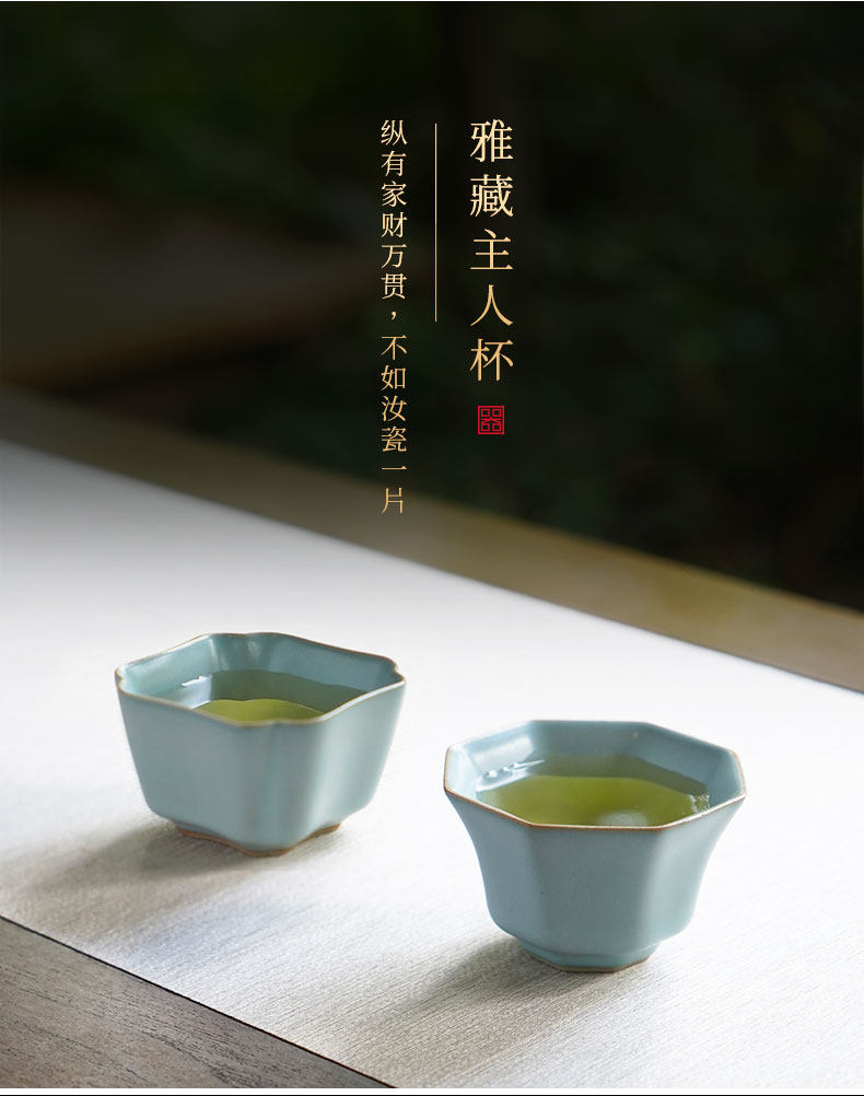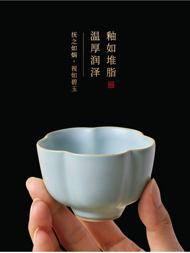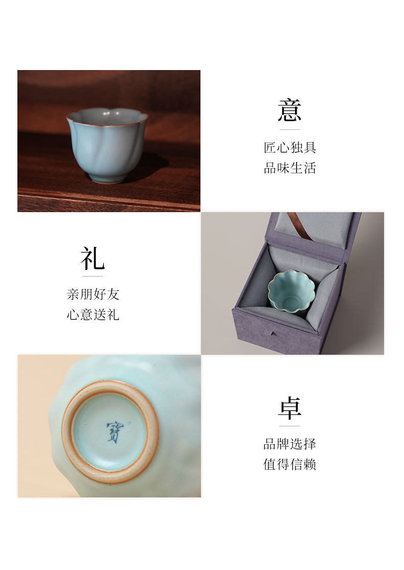 台湾陆宝汝窑茶杯高端主人杯开片可养功夫泡茶品茗杯单杯汝瓷茶盏