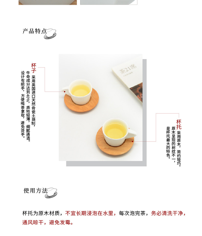 陆宝陶瓷旗舰店品茗杯茶杯托骨瓷茶具咖啡杯茶杯配杯托喝茶单杯子