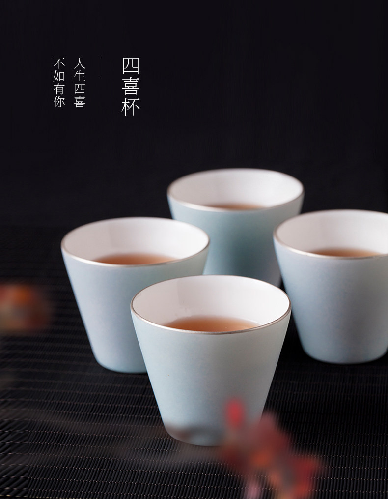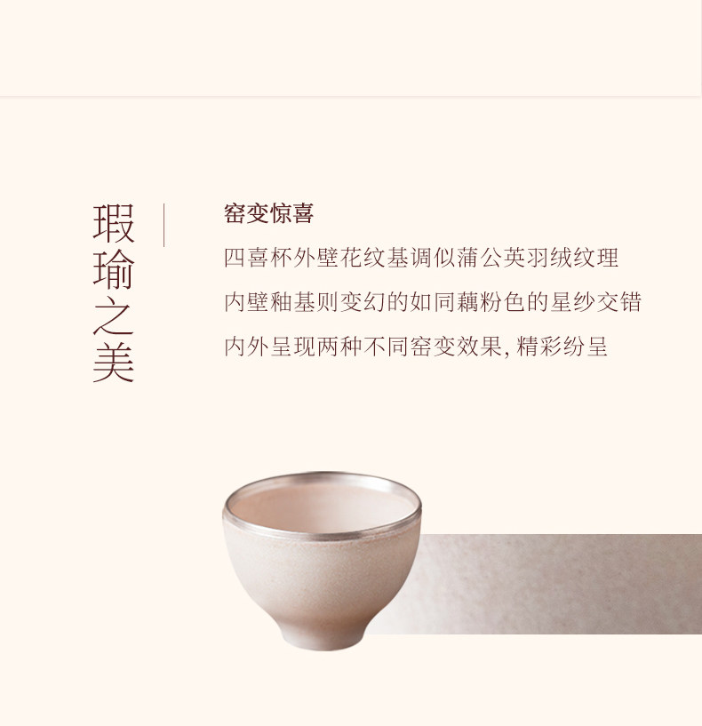 陆宝陶瓷四喜杯骨瓷窑变茶杯子单杯品茗杯个人杯主人杯泡茶杯小杯
