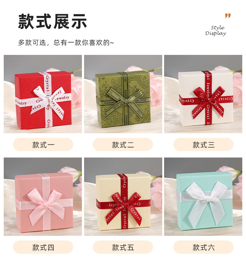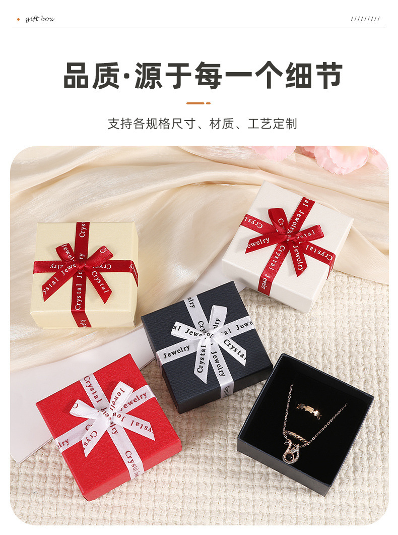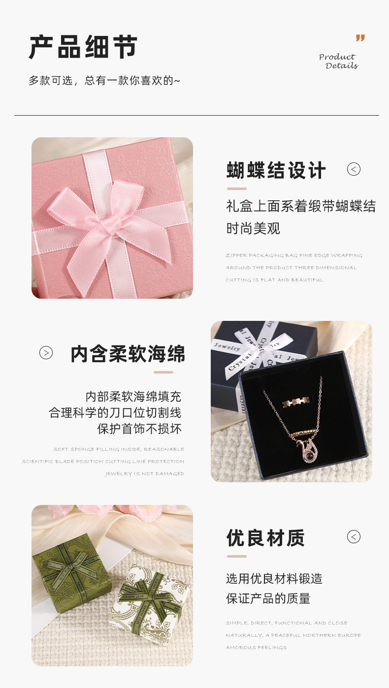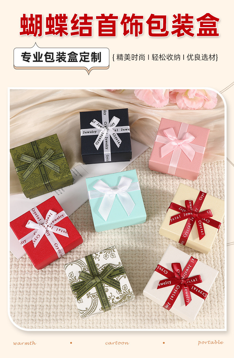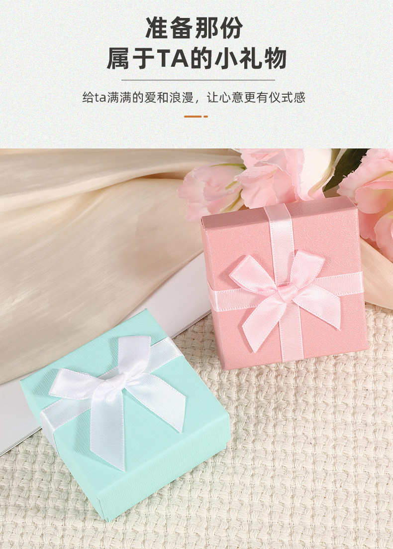 新款天地盖蝴蝶结首饰盒项链戒指精美礼品盒正方形首饰收纳盒批发