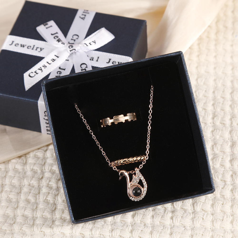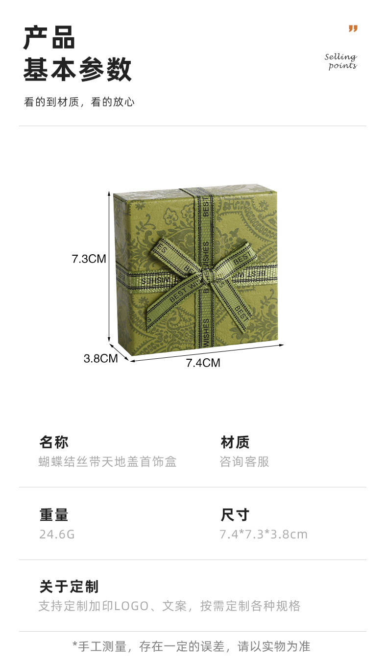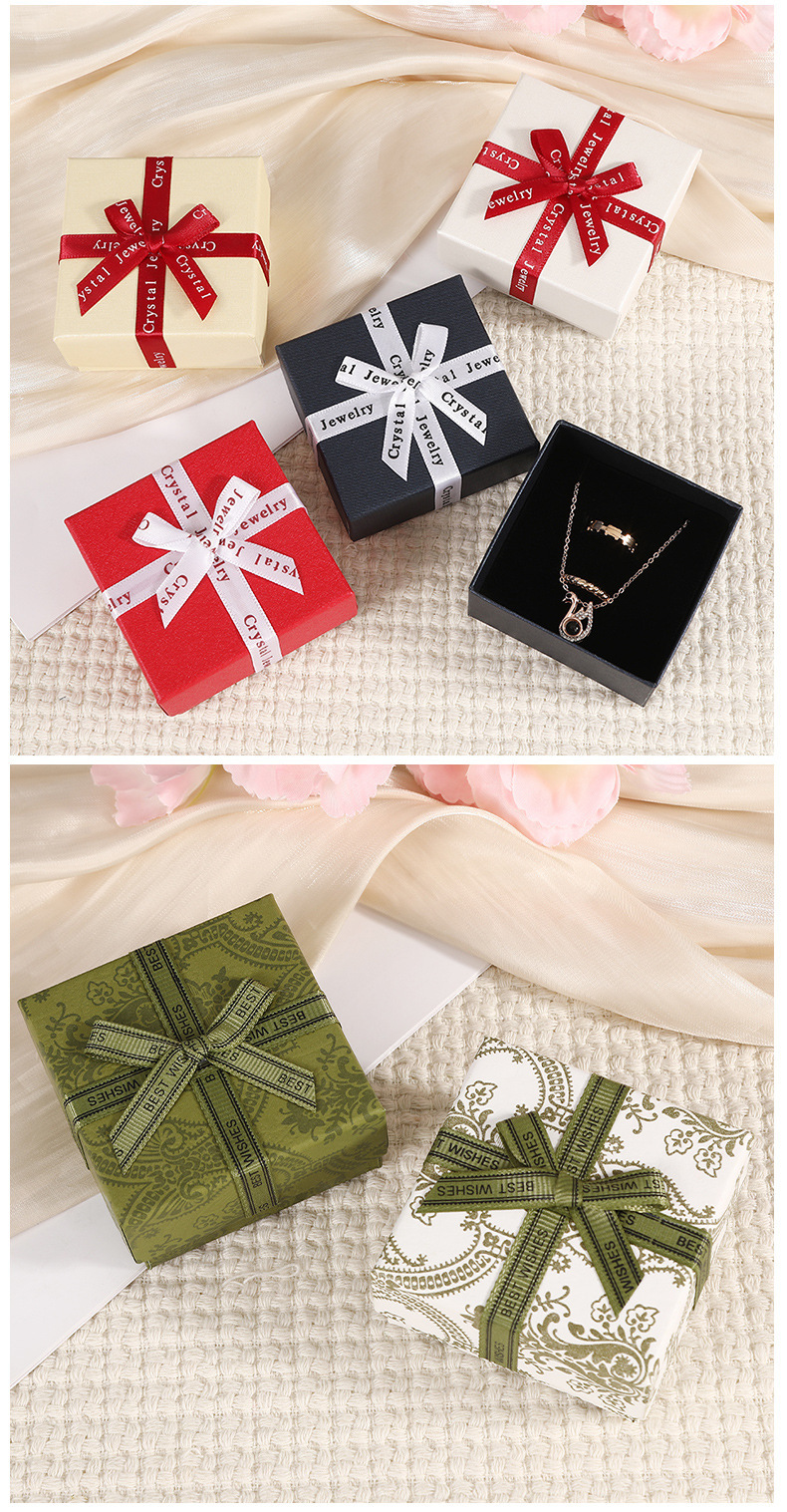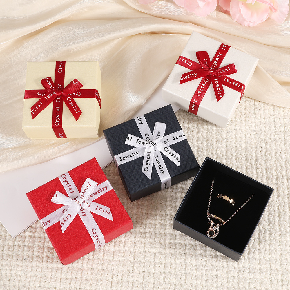 新款天地盖蝴蝶结首饰盒项链戒指精美礼品盒正方形首饰收纳盒批发