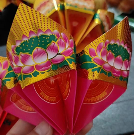 工厂批发莲花片半成品发祭祀用品七彩佛字手工折纸整箱一万片包邮