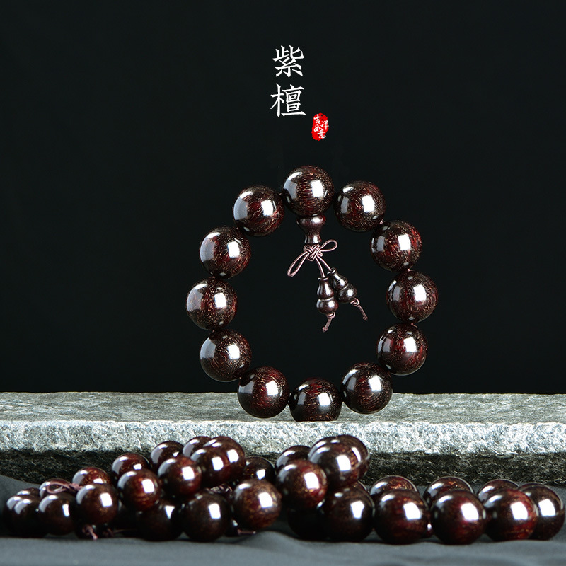 天然檀木佛珠手串男盘玩木头紫檀黄花梨沉香木质珠子文玩手链念珠