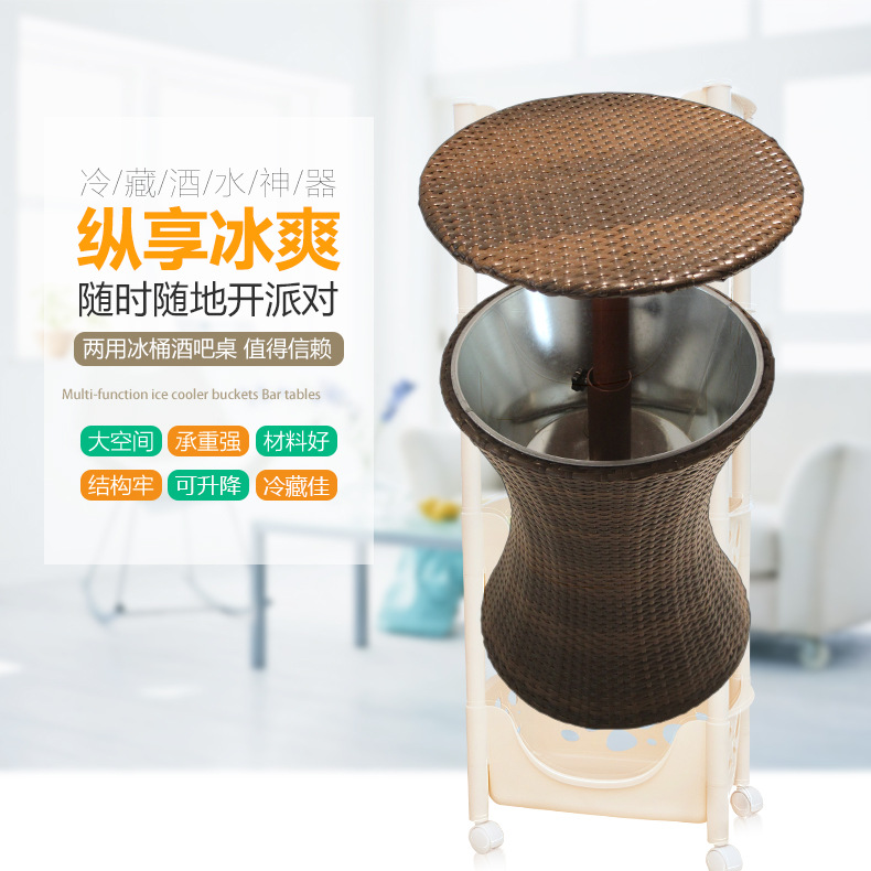户外藤编冰桶桌子酒吧陈列用桌子派对婚礼用装饰冰桌可升降高度