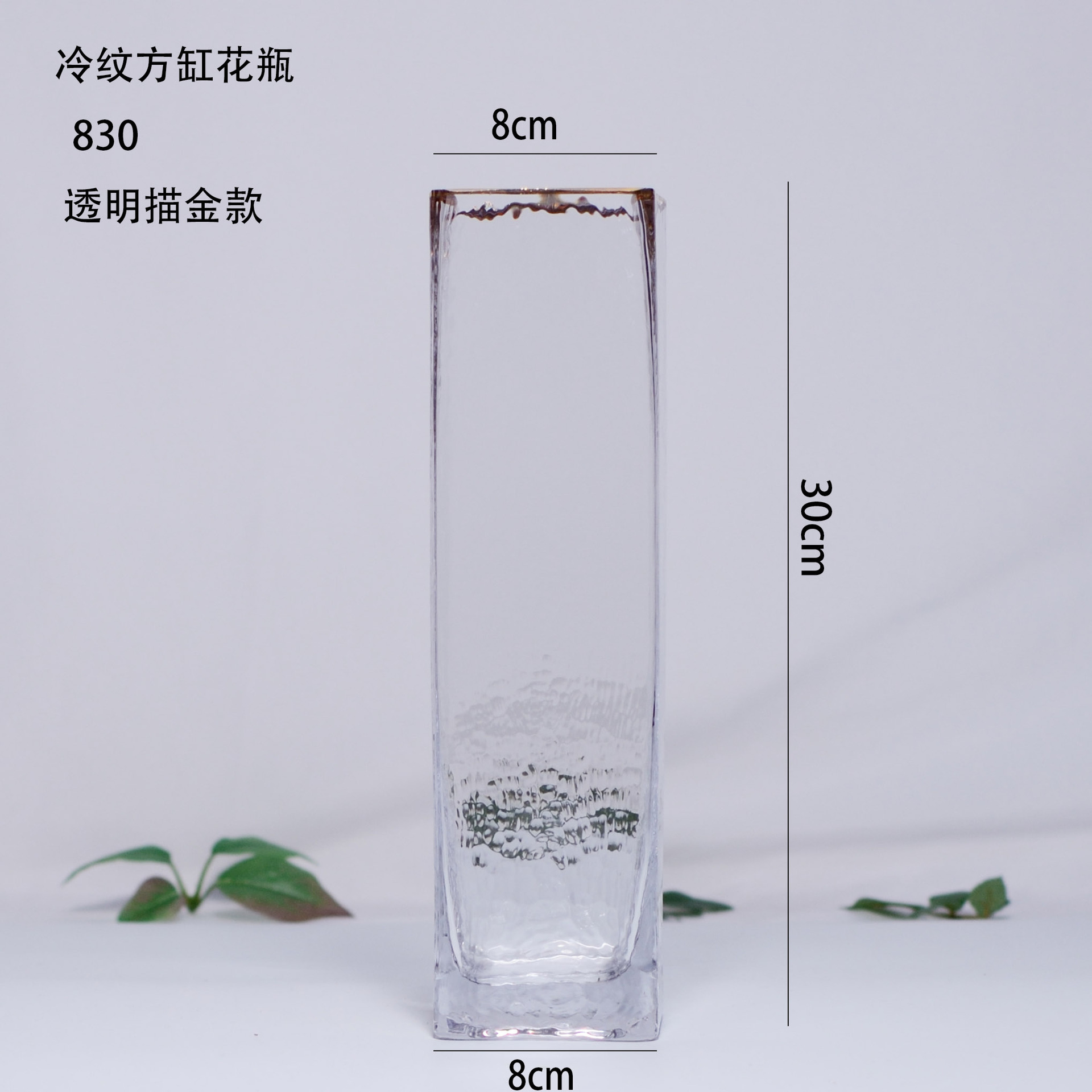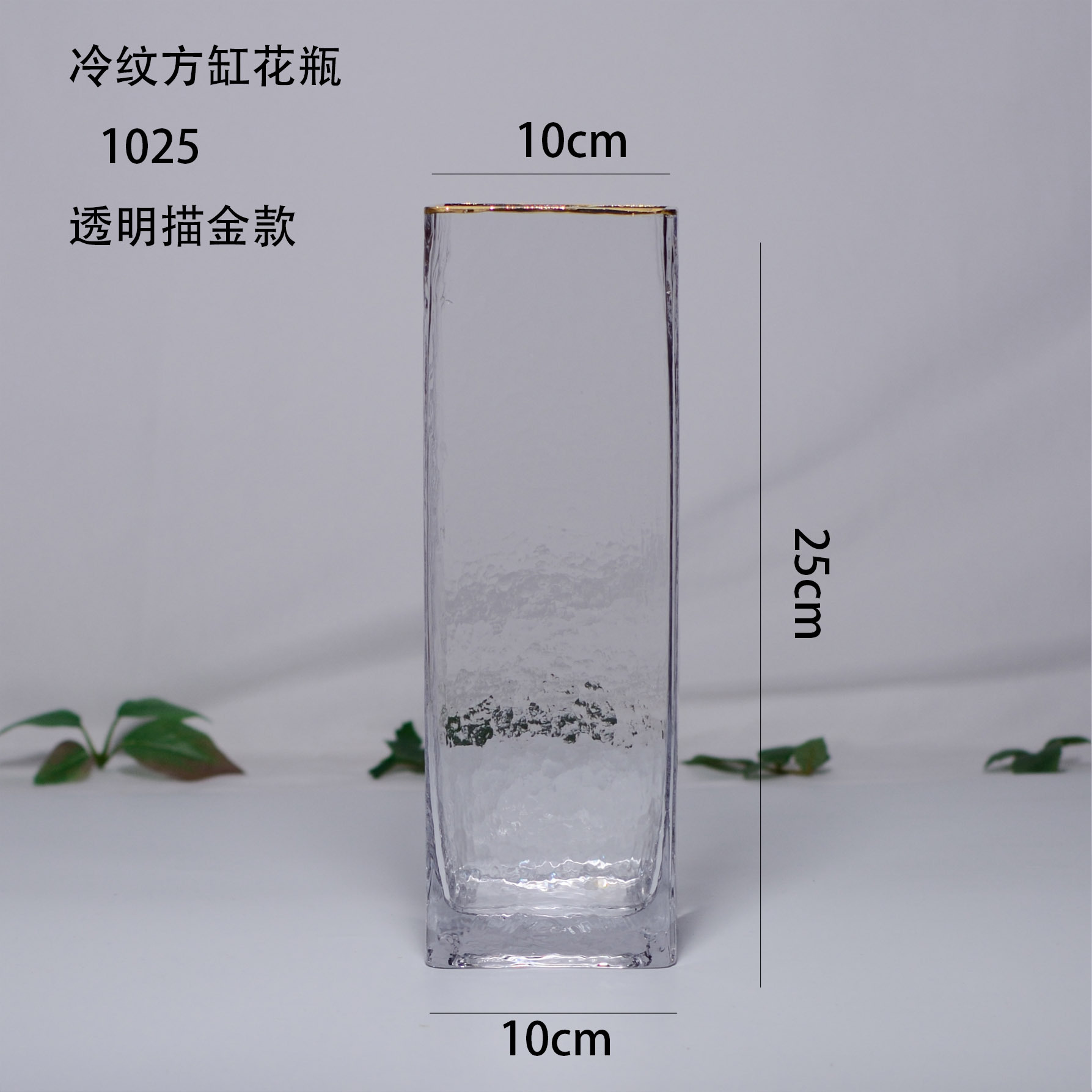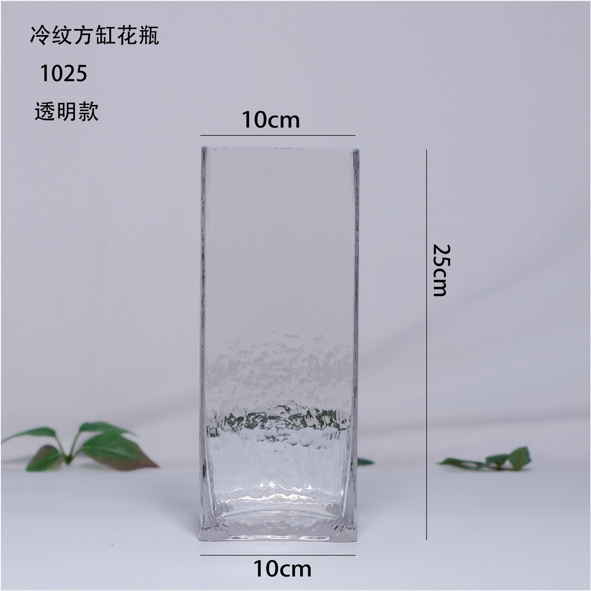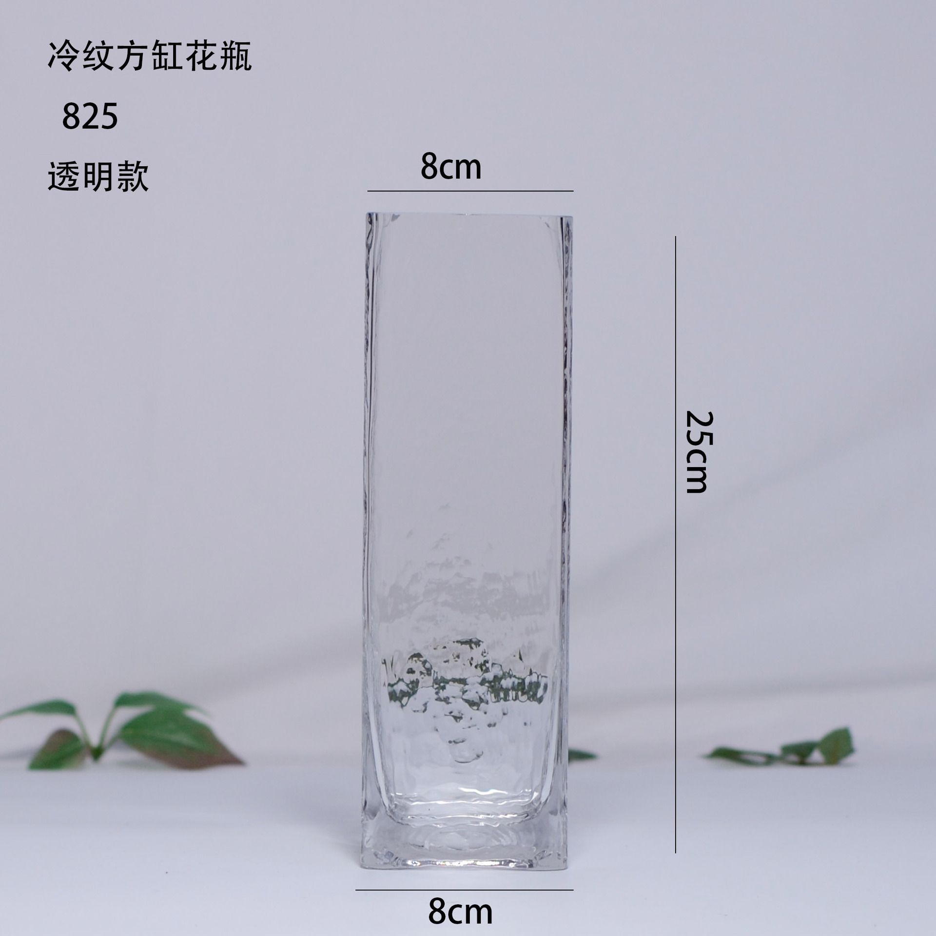 北欧轻奢风冷纹方刚花瓶摆件客厅插花干花玄关家居软装饰玻璃花瓶