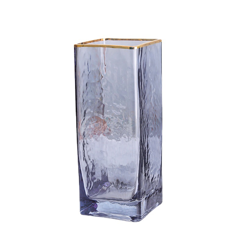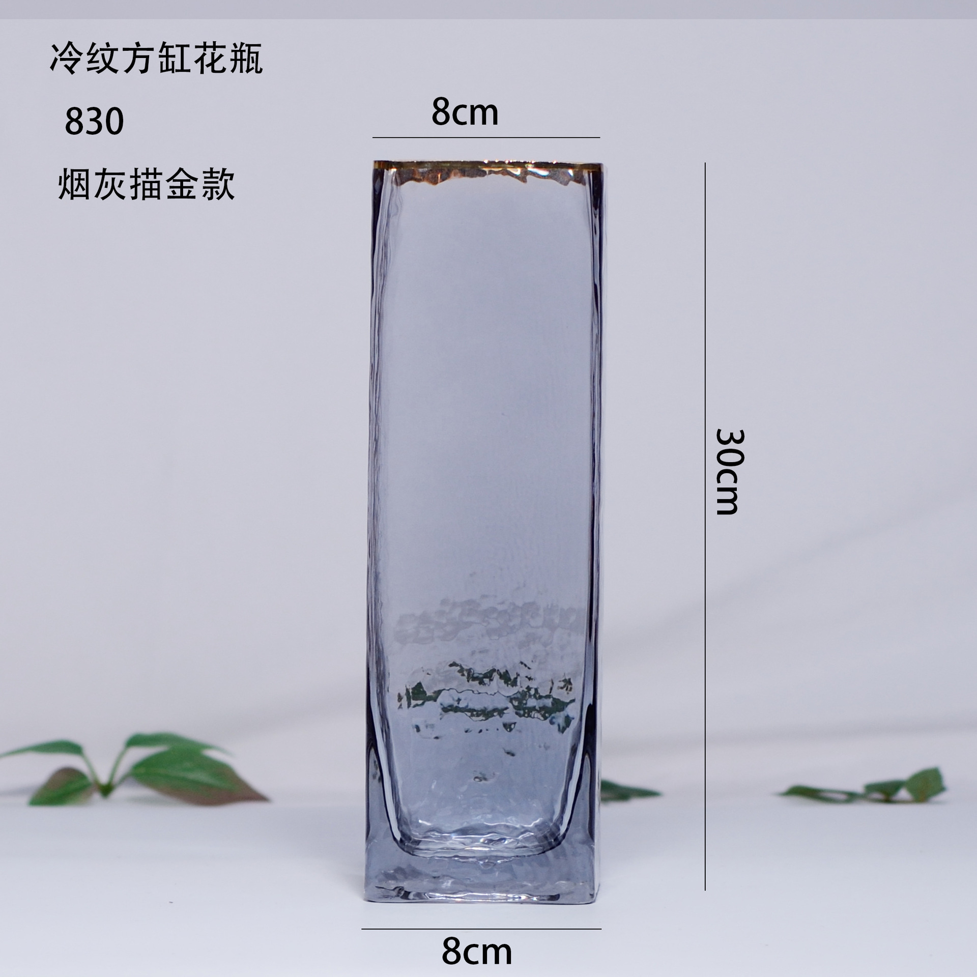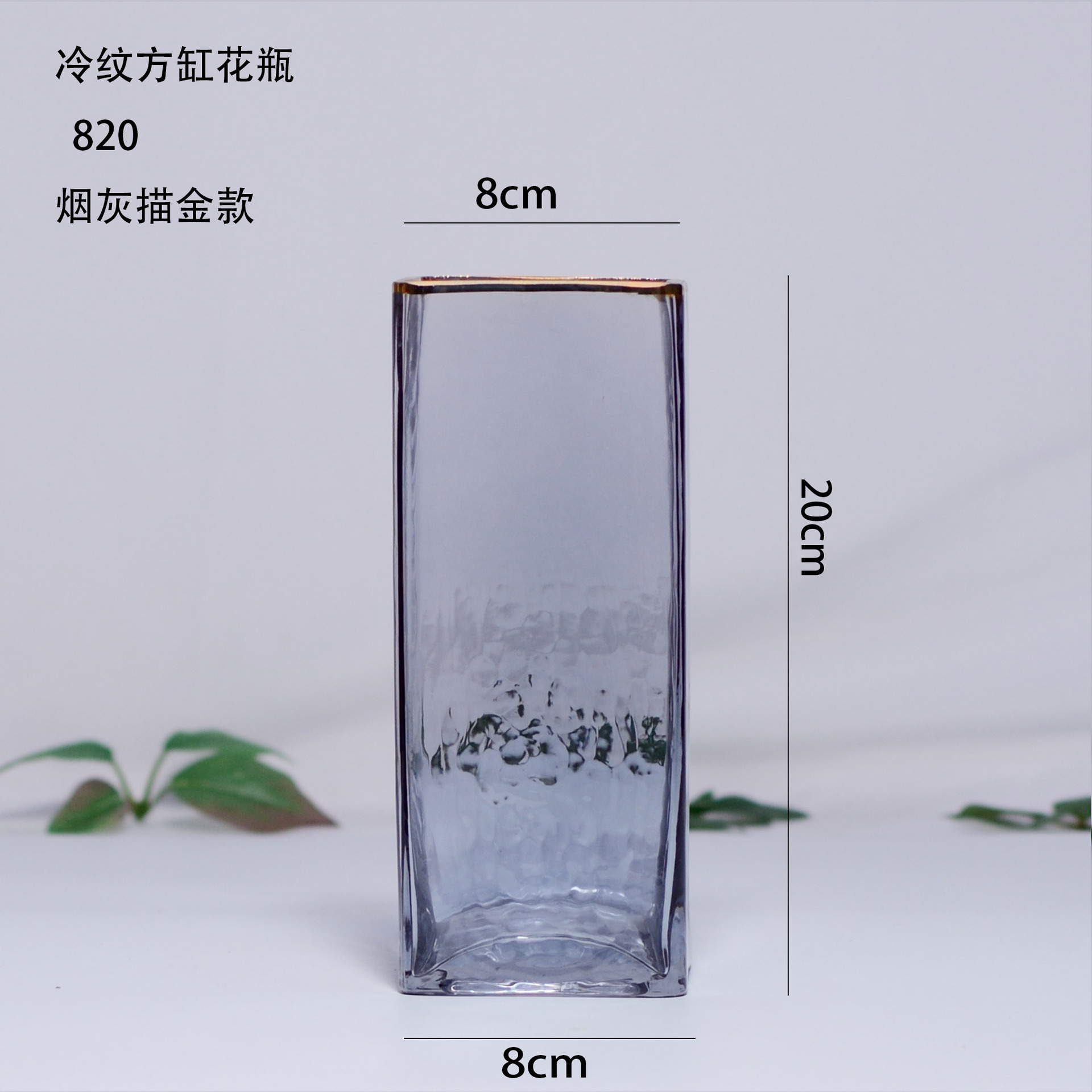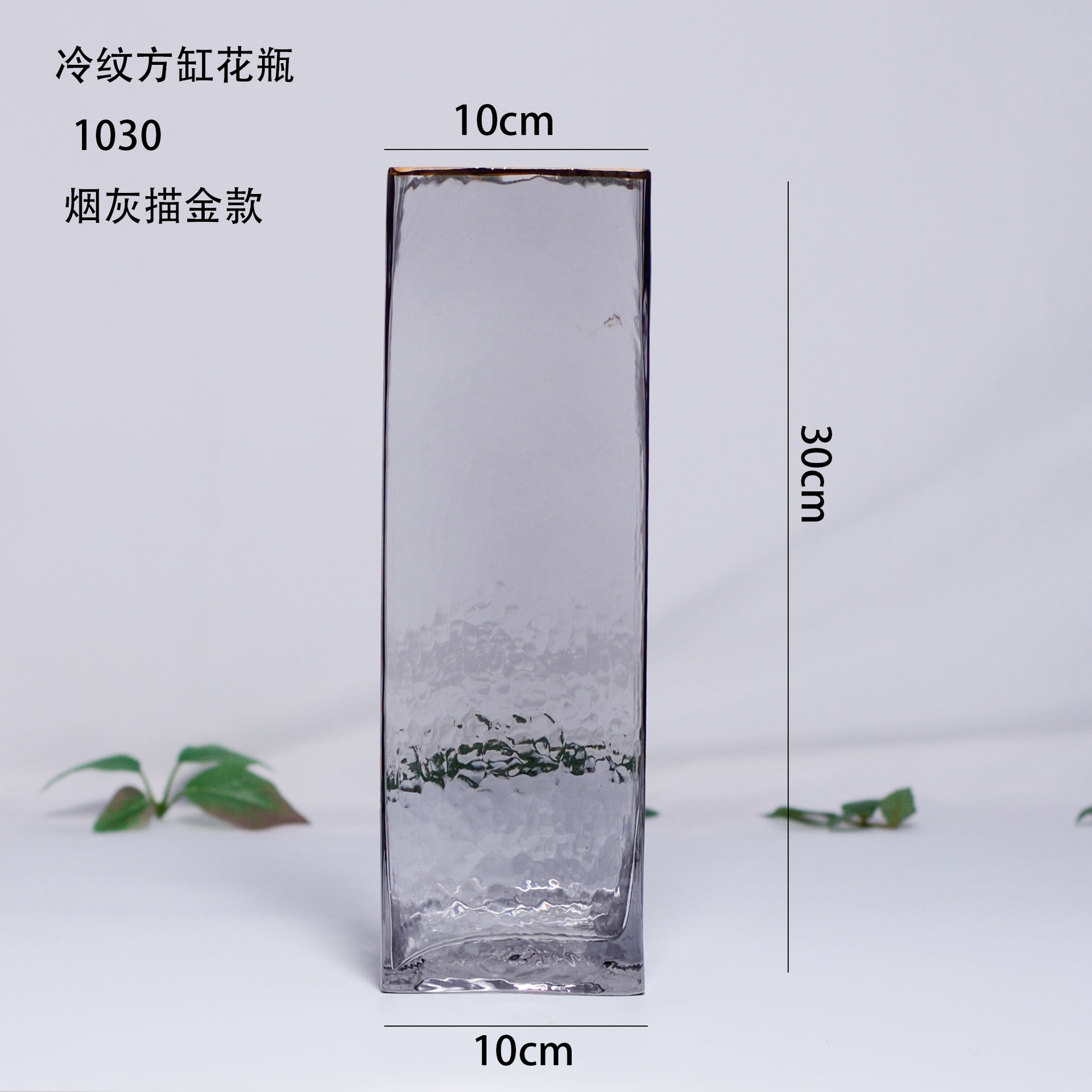 北欧轻奢风冷纹方刚花瓶摆件客厅插花干花玄关家居软装饰玻璃花瓶