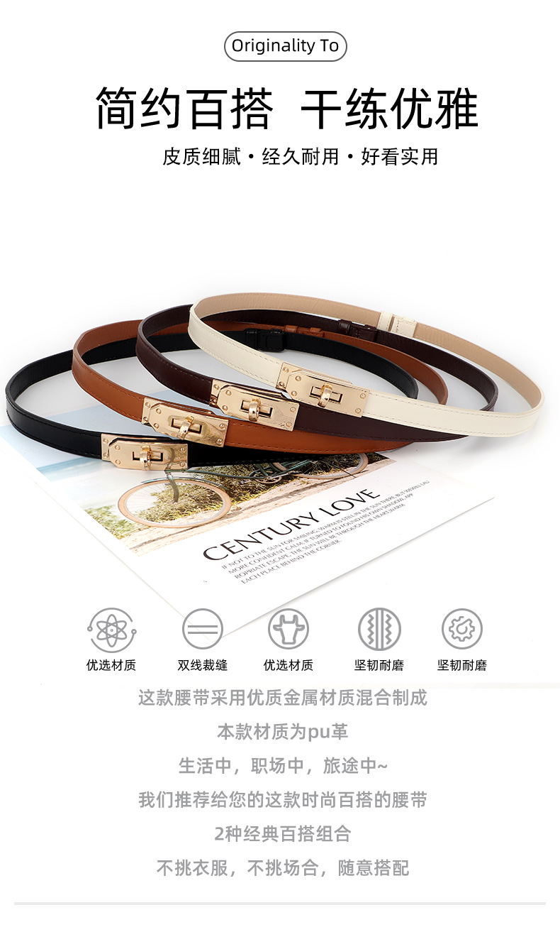 连衣裙腰带配饰皮带女士新款锁扣对拉装饰裙子西装大衣收腰免打孔