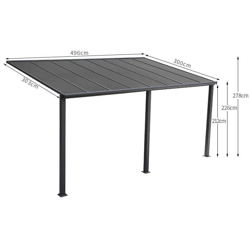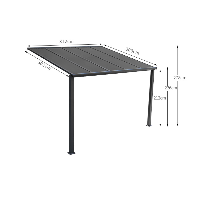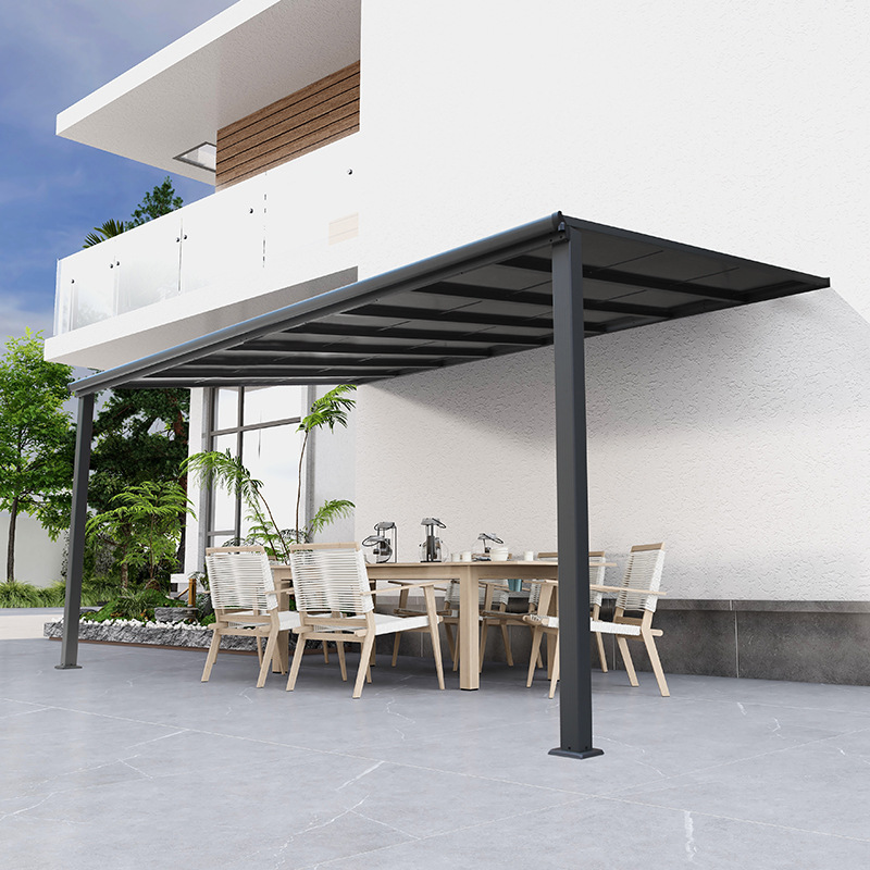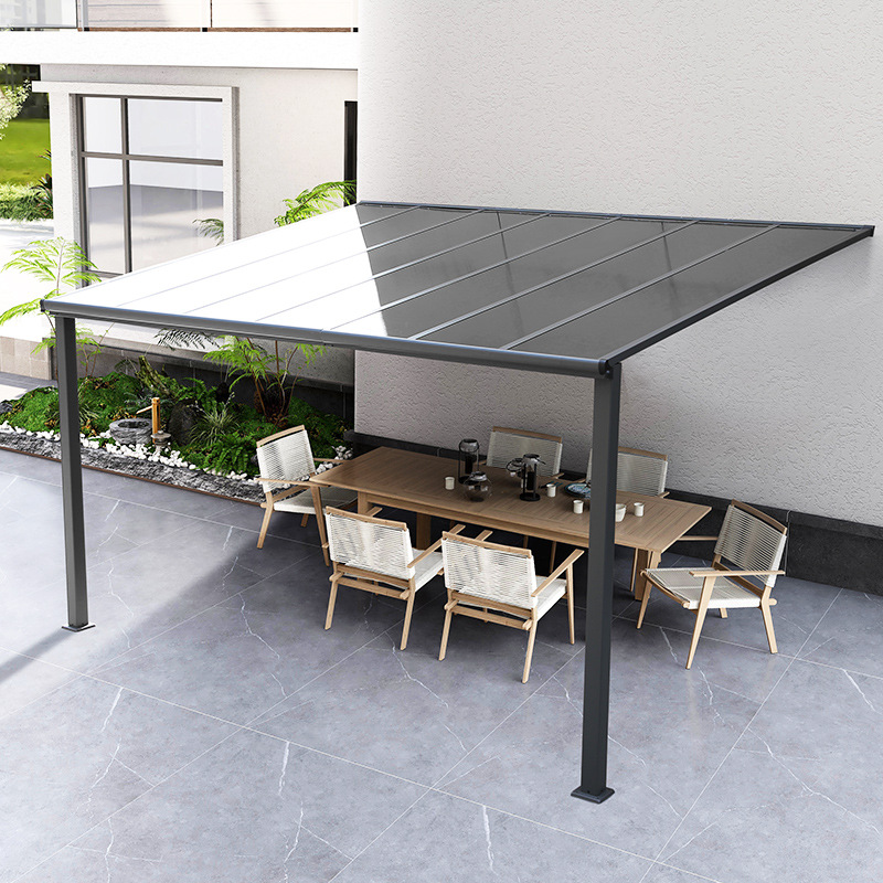 单边遮阳棚雨棚车棚铝合金户外挡雨防晒降温PC板阳光棚厂家直供