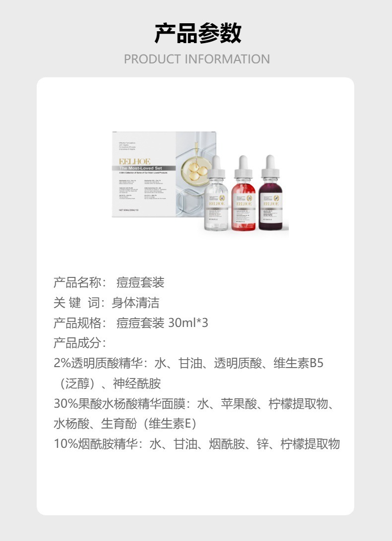EELHOE 痘痘套装 面部清洁净痘护理肌肤淡化痘印精华面膜套装