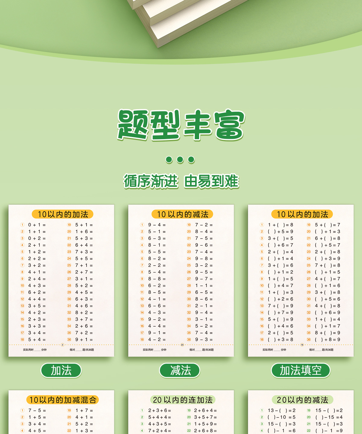 口算天天练幼小衔接10--20以内加减法练习册全套每日一练口算题卡