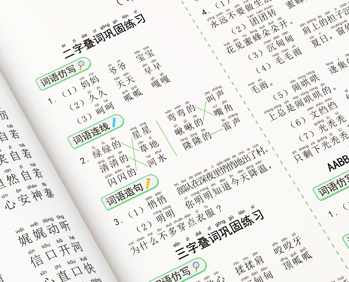 小学生词语积累大全1一6年级语文aabb式abab词语专项训练叠词量词