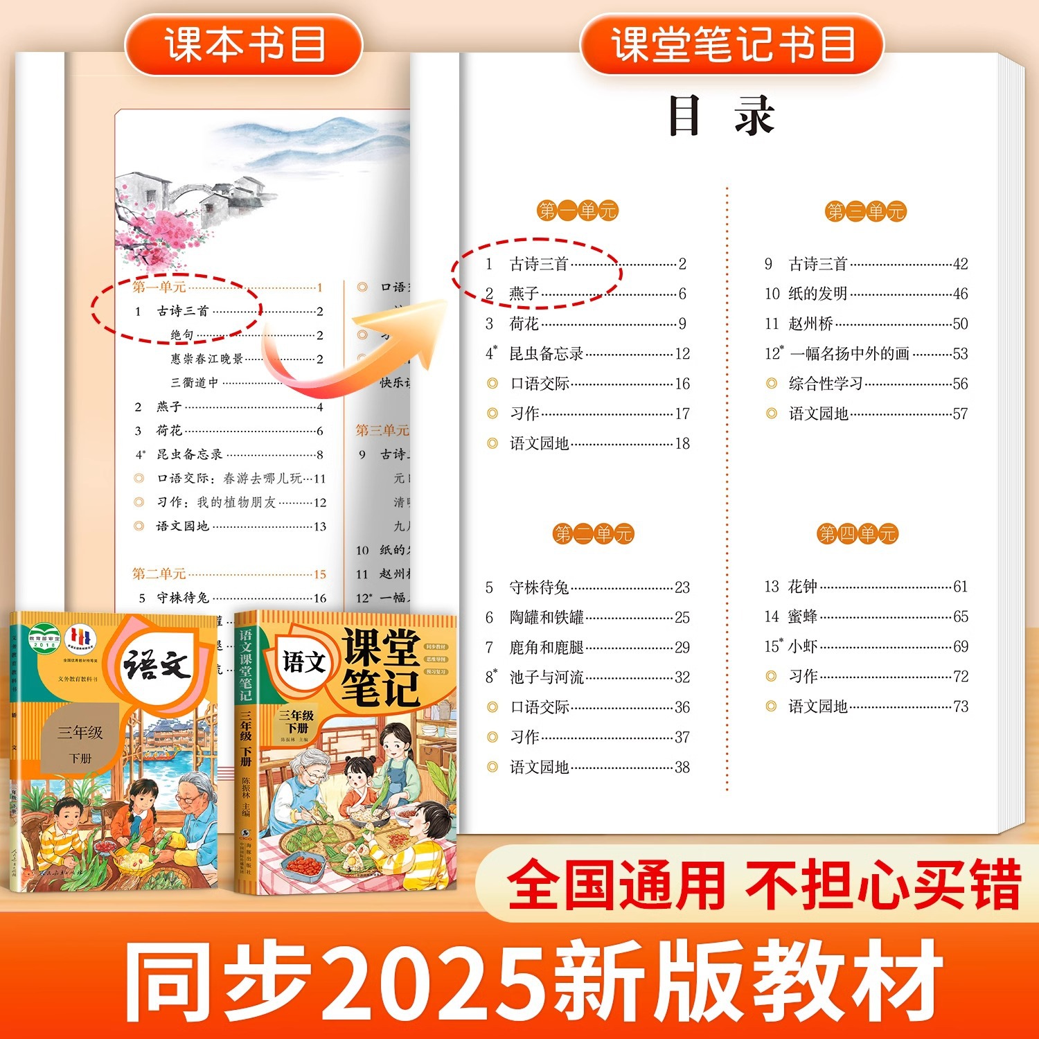 2025新版小学教材语文一二三四五六年级课堂笔记人教版全解教辅