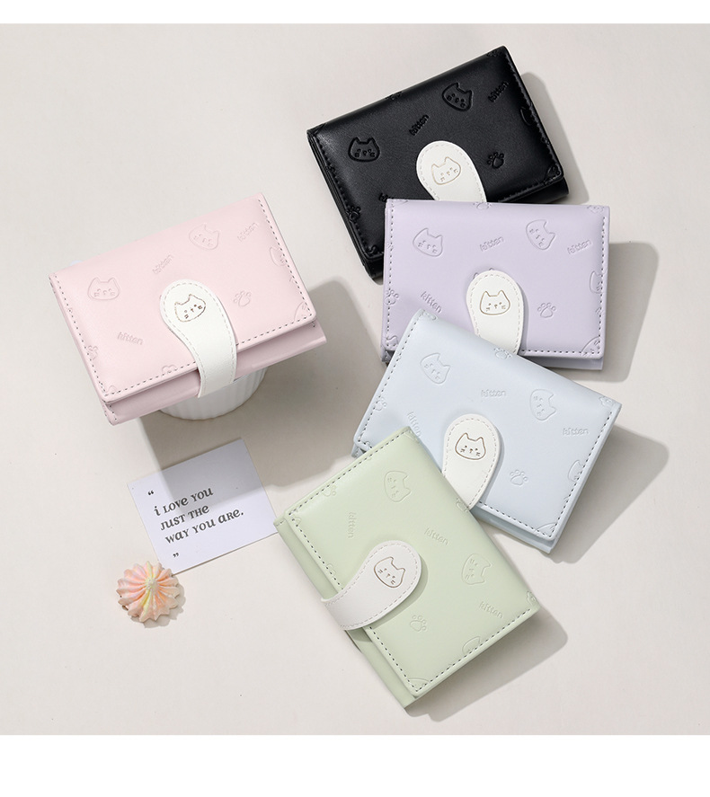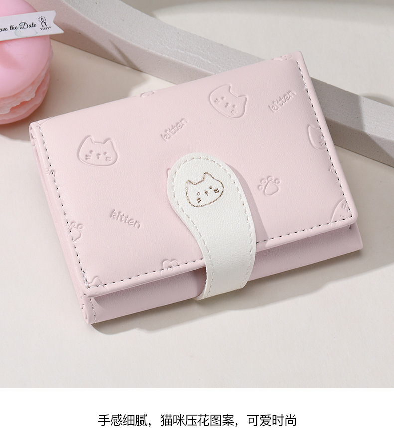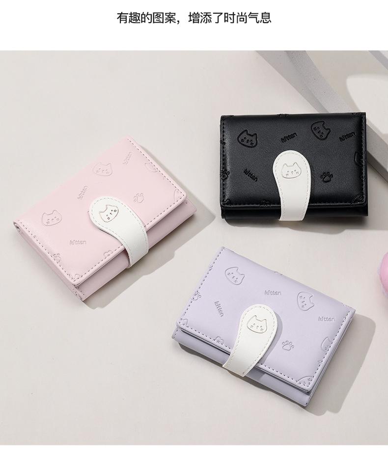 猫咪小尾巴可爱女士卡包钱包高级时尚扣带PU短款三折零钱包wallet