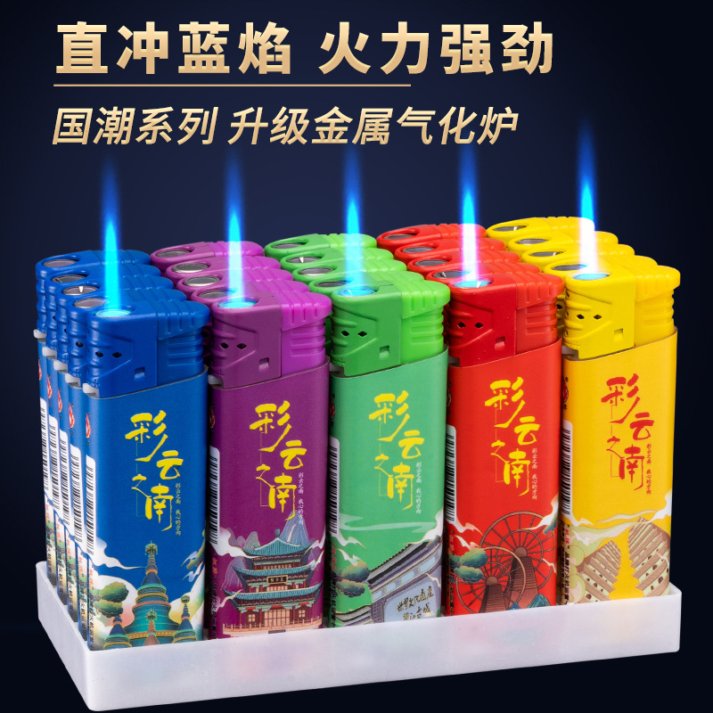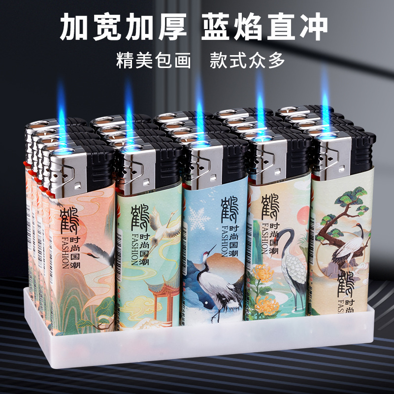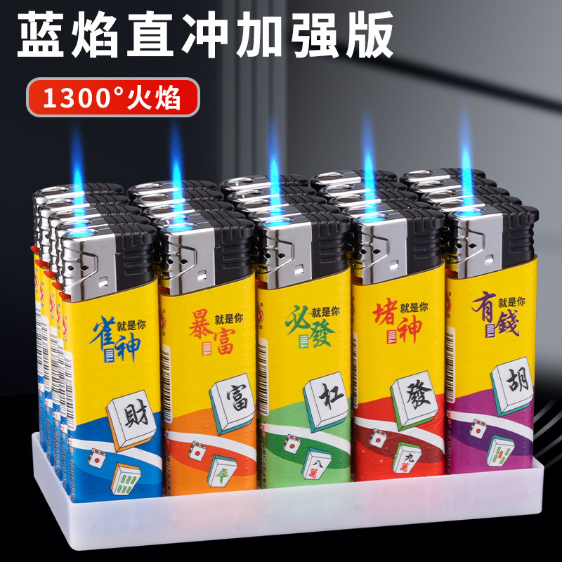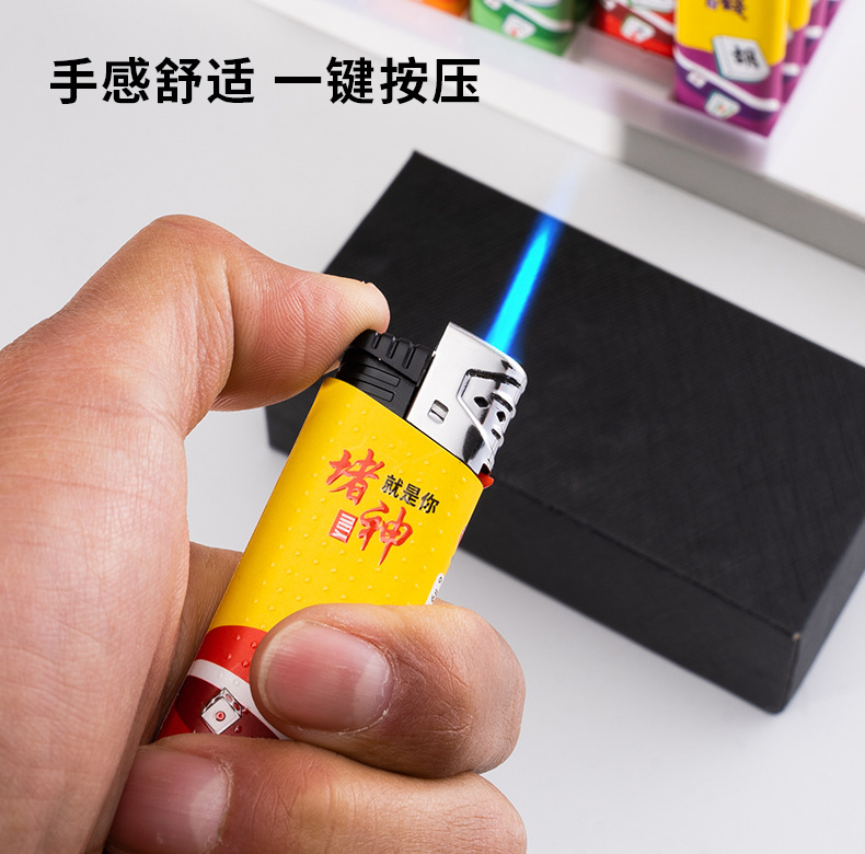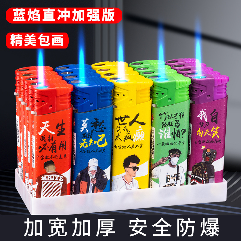 新款防风打火机个性图案创意防爆蓝焰直冲充气一次性打火机批发