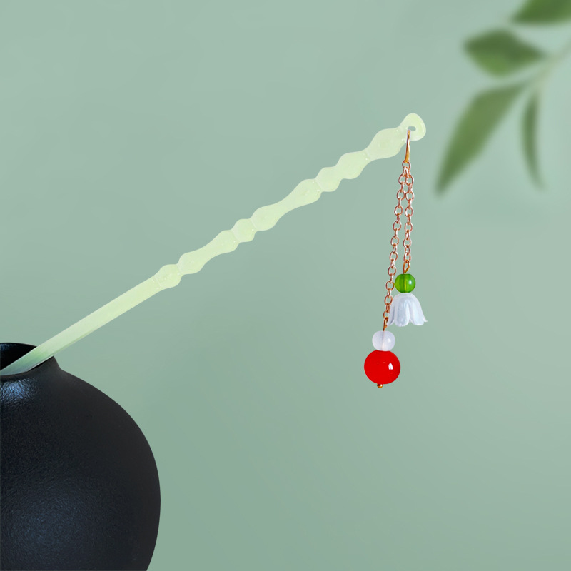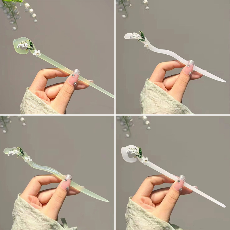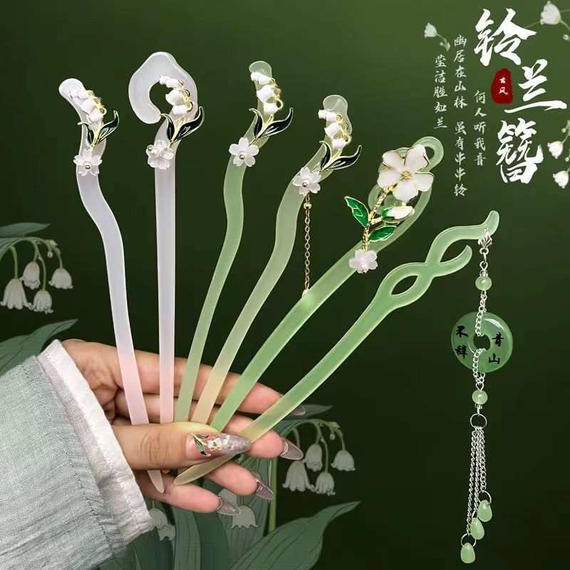 夏季超仙发簪合集铃兰花簪子树脂塑料发钗古典女发饰摆摊夜市批发