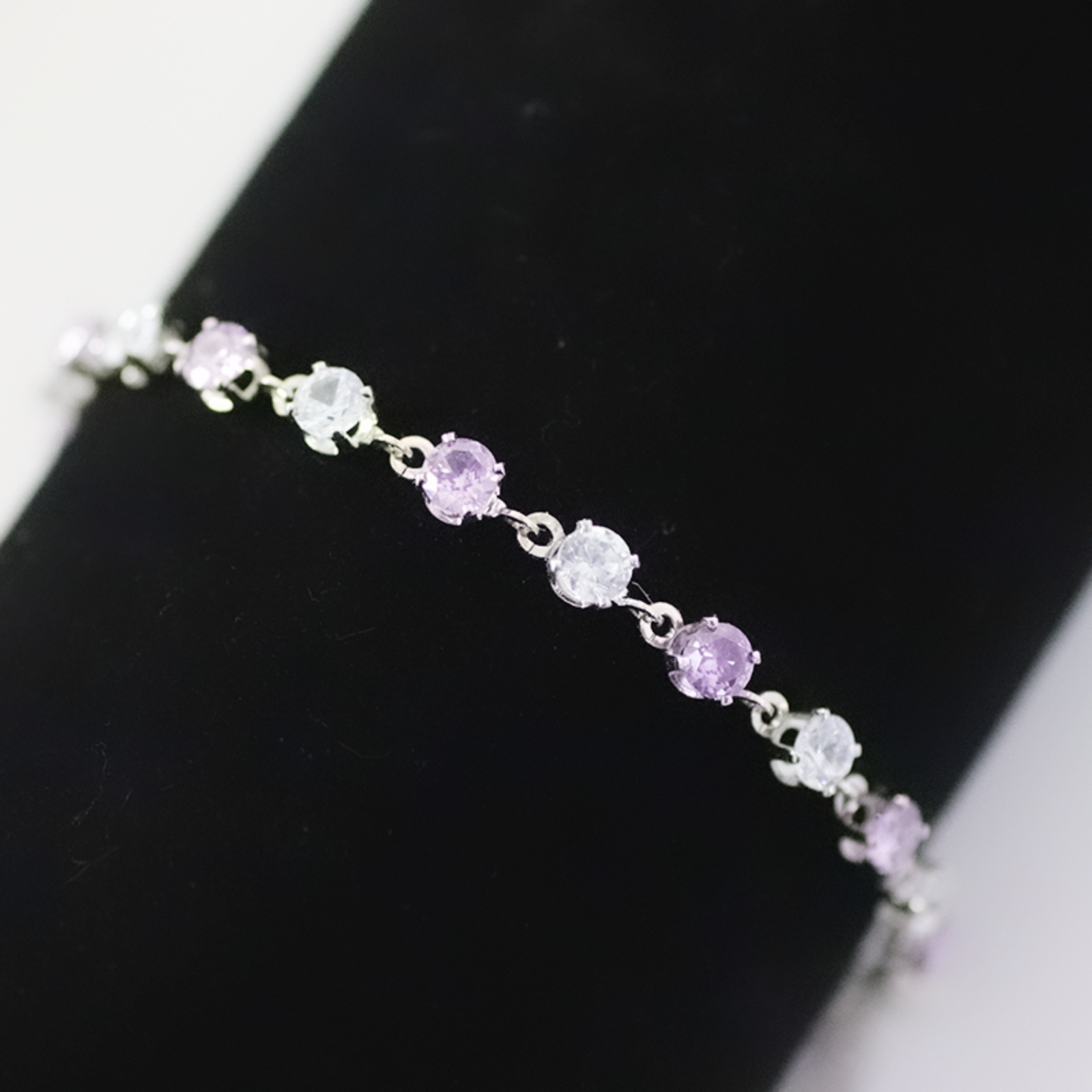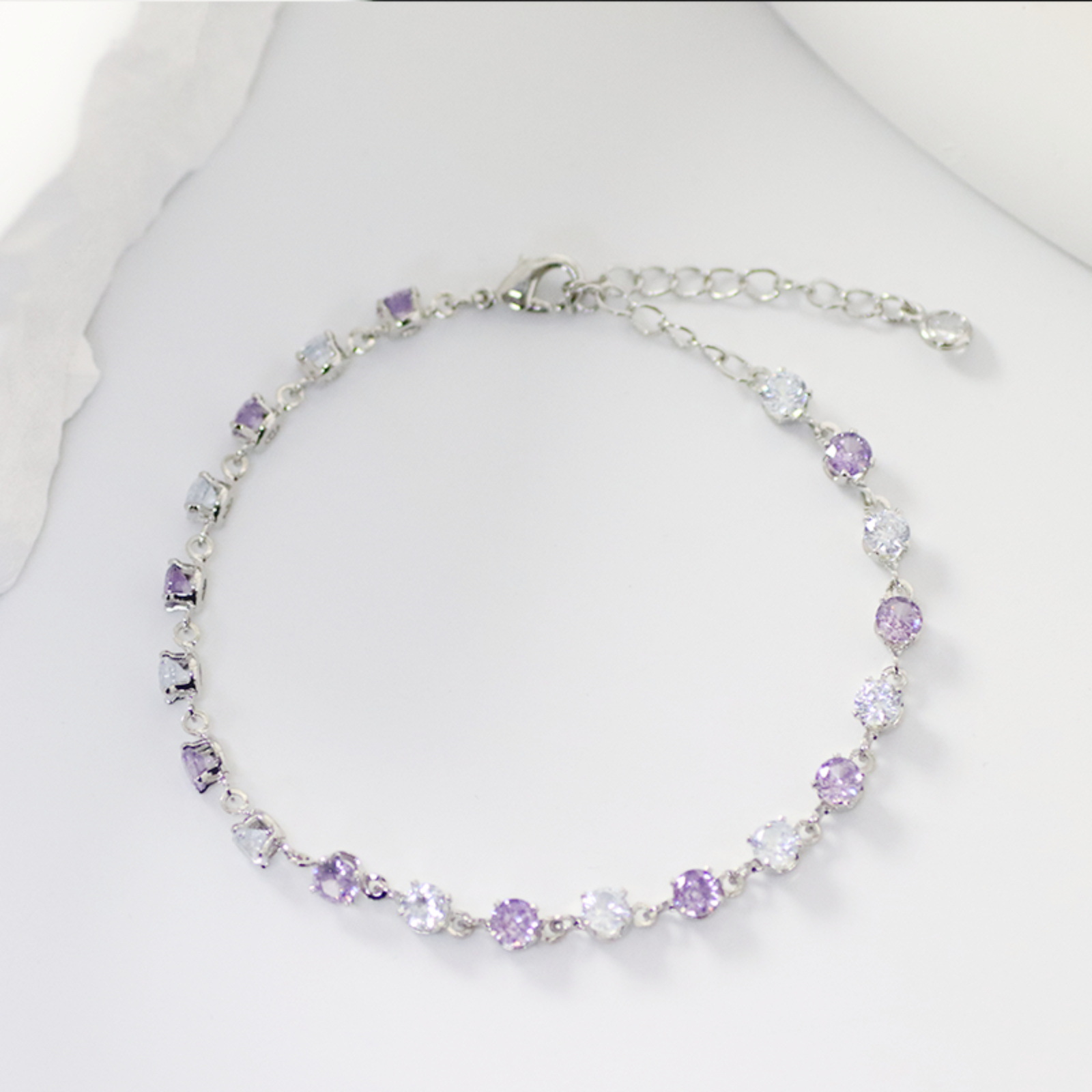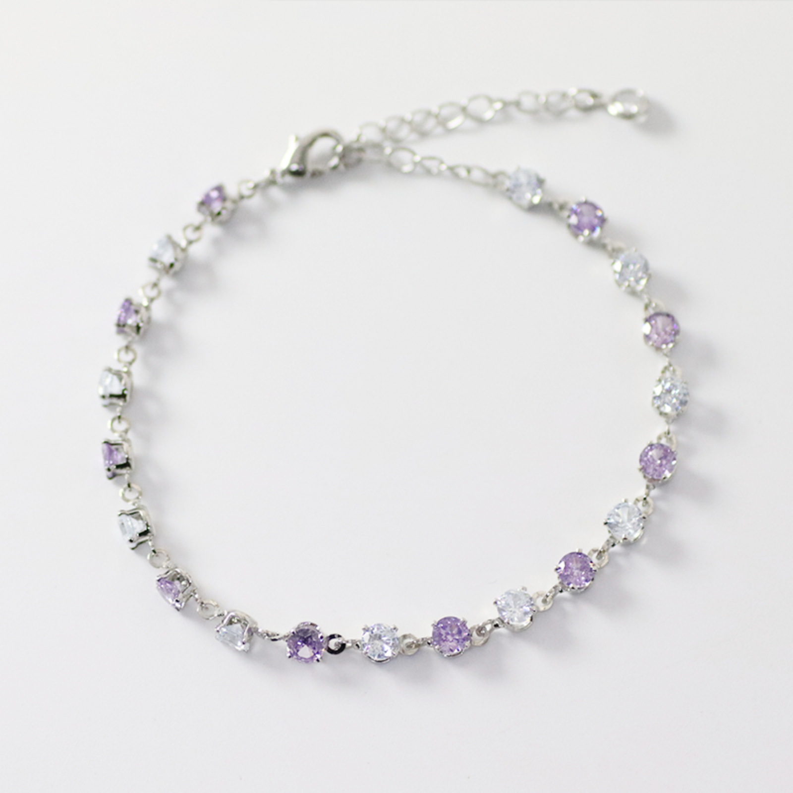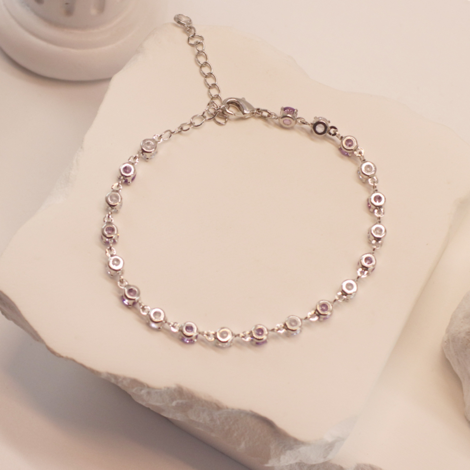 跨境款白+紫圆形锆石手链 不锈钢电镀时尚小众新款 厂家现货直销