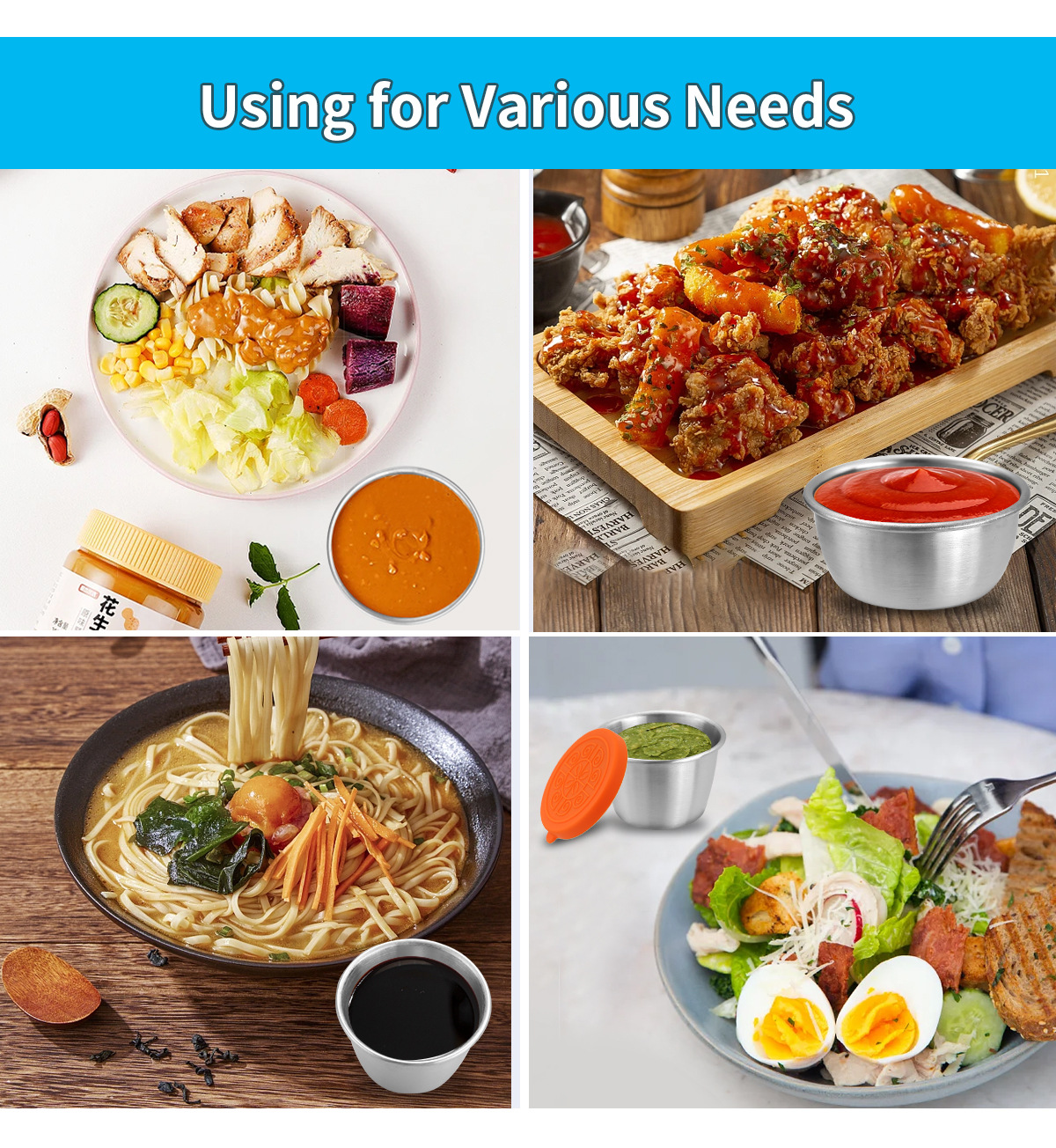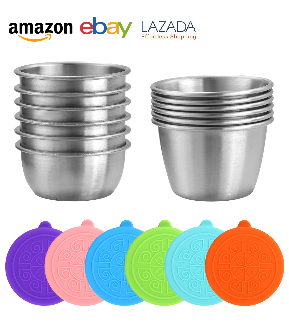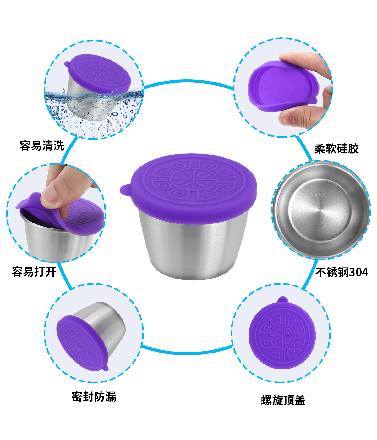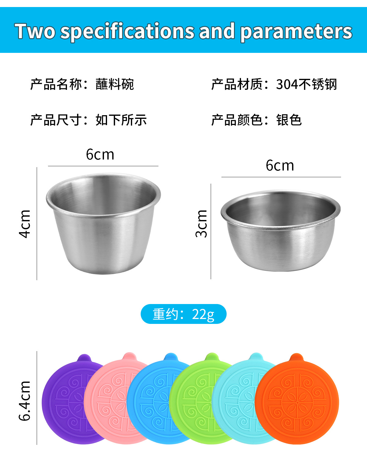 50/70ML酱汁杯304不锈钢蘸料碟带盖子防漏沙拉酱容器蘸汁杯调味碟