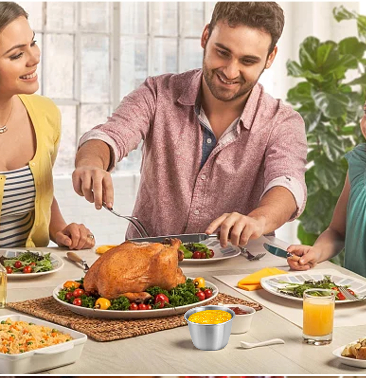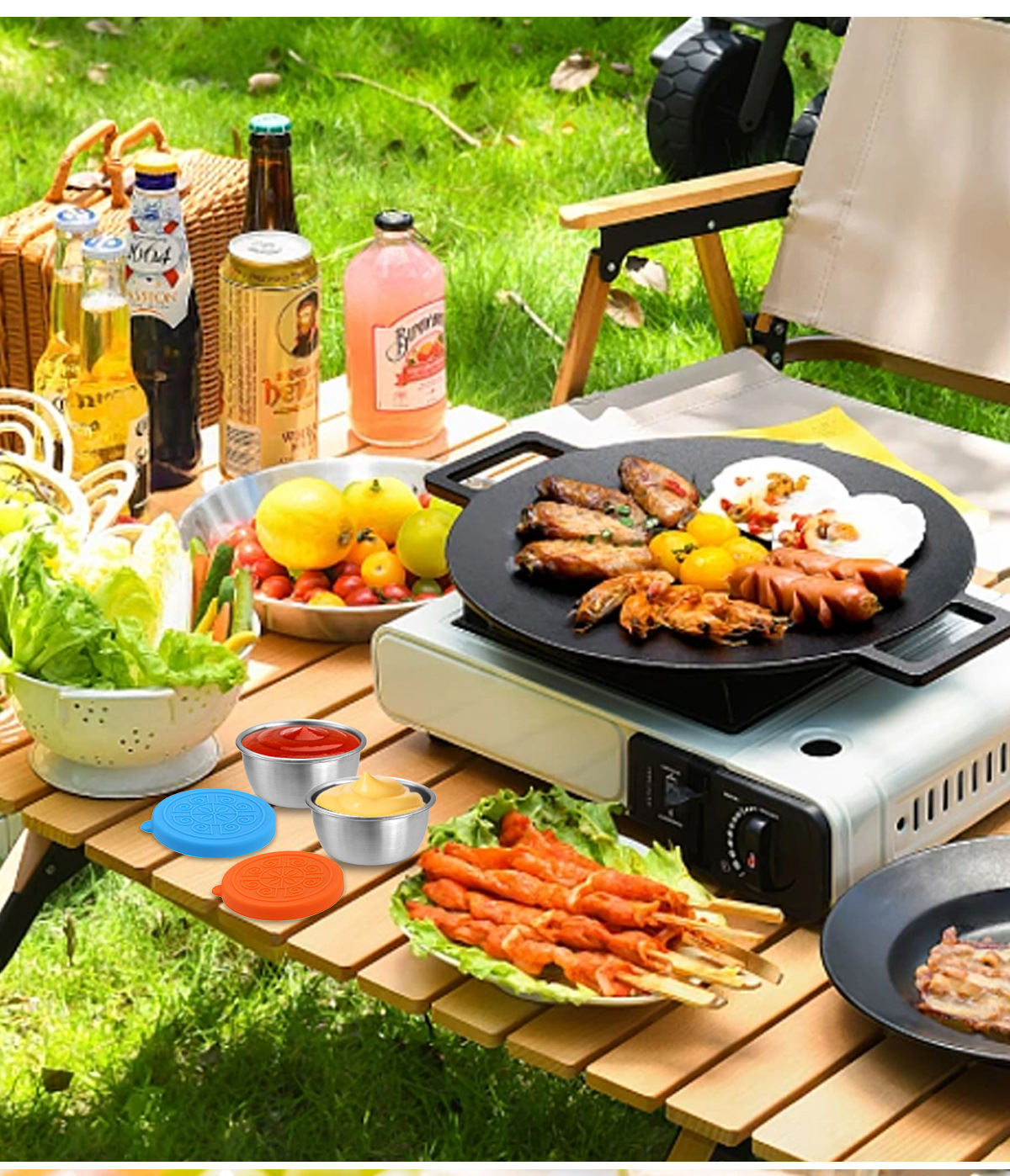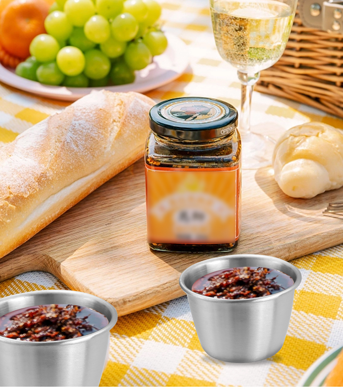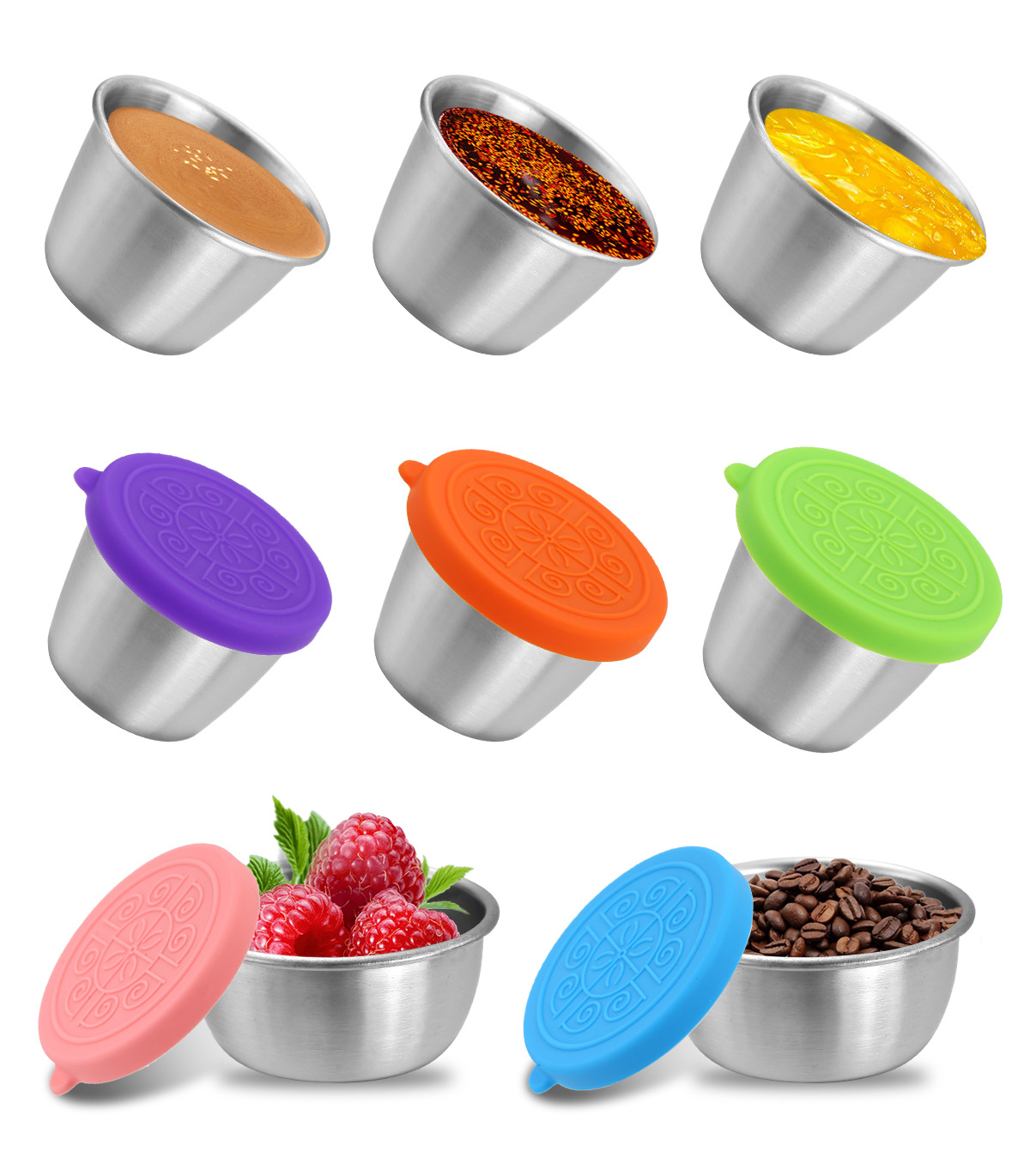 50/70ML酱汁杯304不锈钢蘸料碟带盖子防漏沙拉酱容器蘸汁杯调味碟