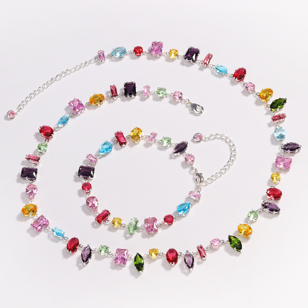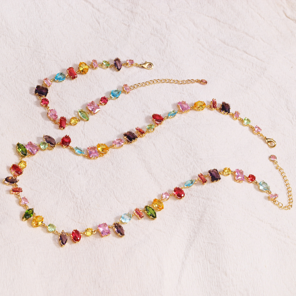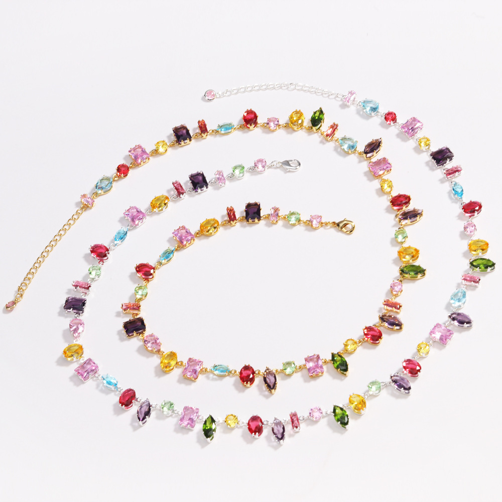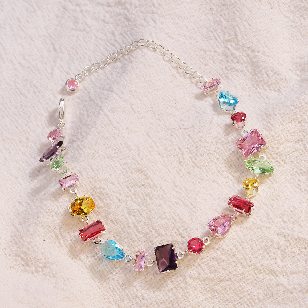K跨境手链ins风锆石款彩色时尚爪项链欧美2024女式长方形金手环款