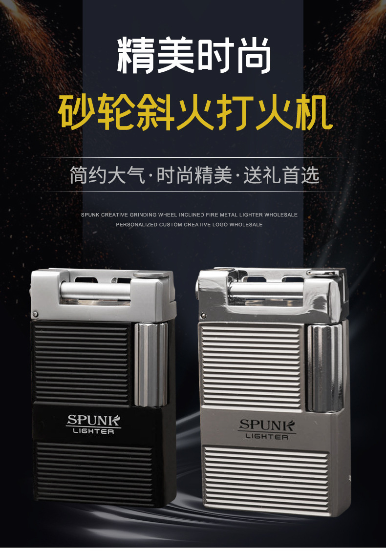 司派克SPUNK斜火打火机金属个性批发打火器砂轮创意直冲点火器
