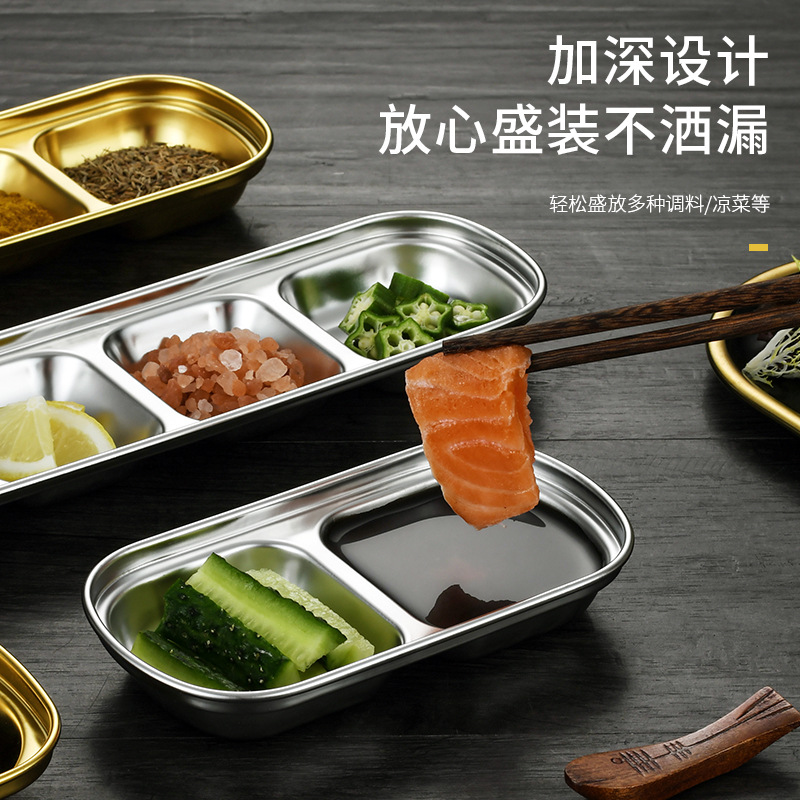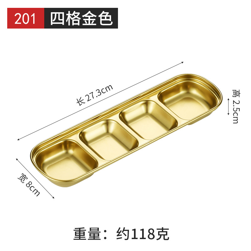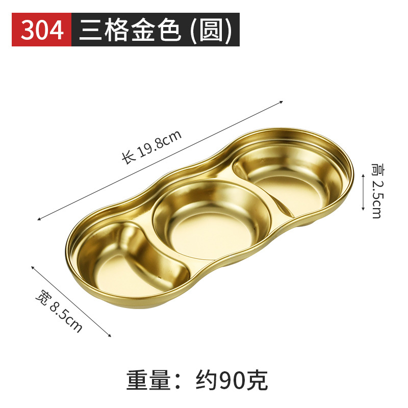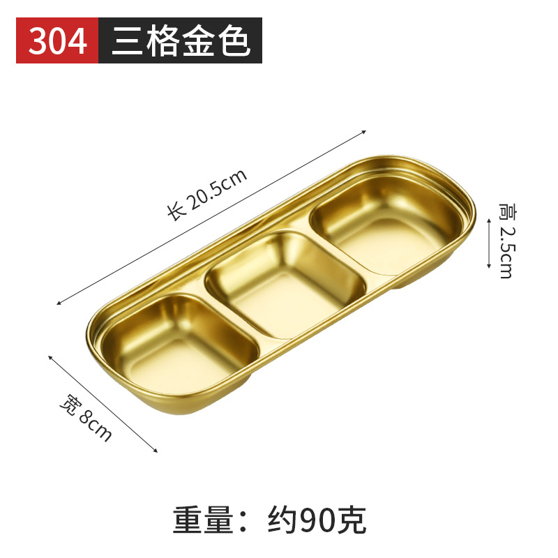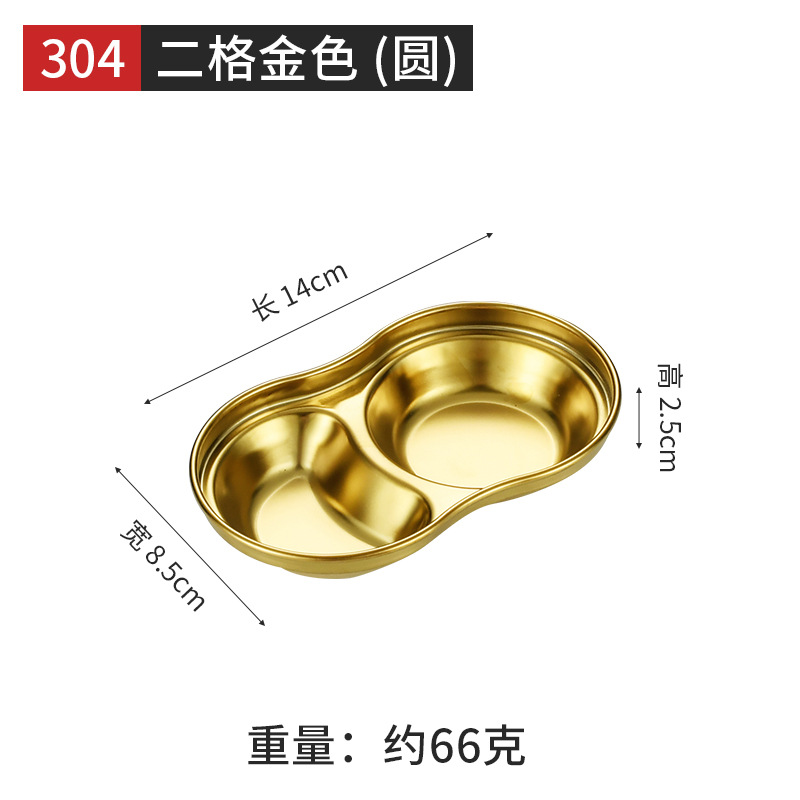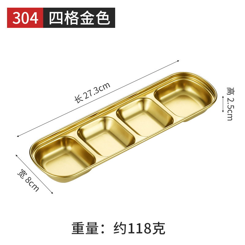 火锅调料碟酱料碟金色蘸料碟烤肉餐具 户外露营304不锈钢韩式格碟