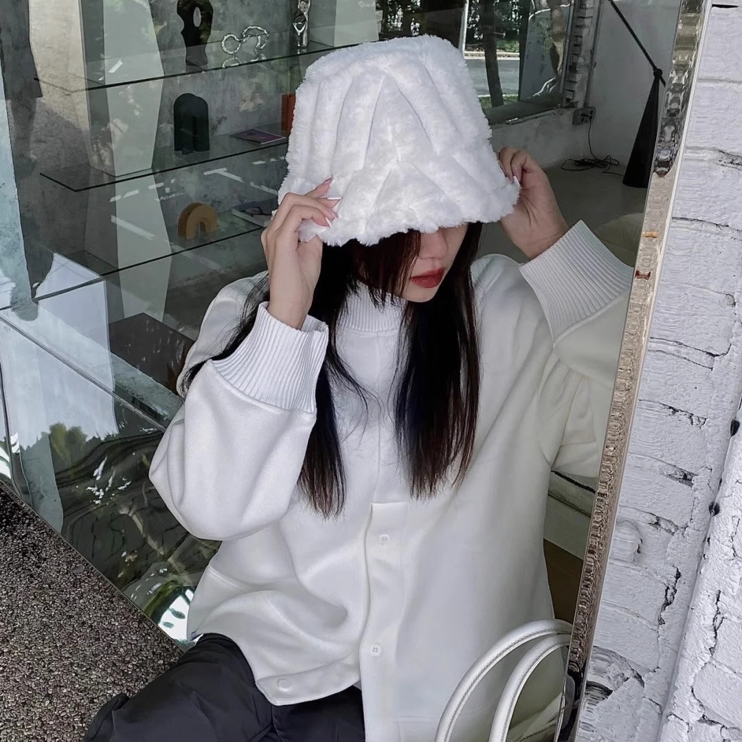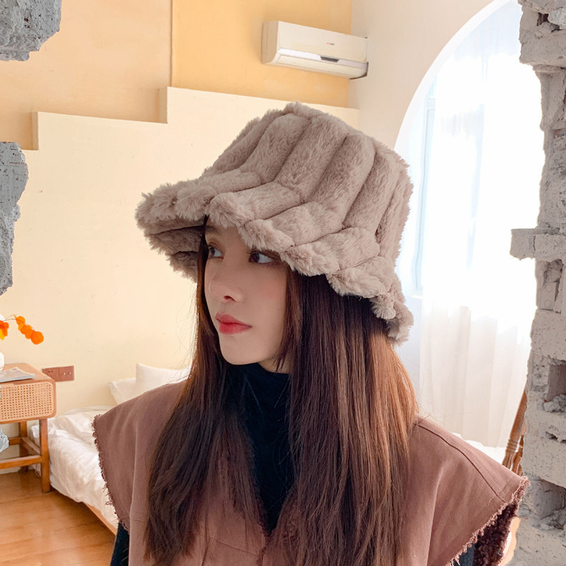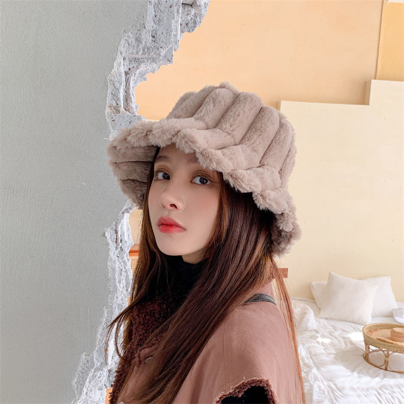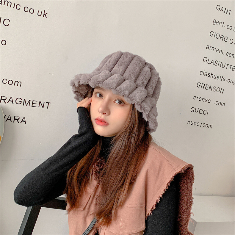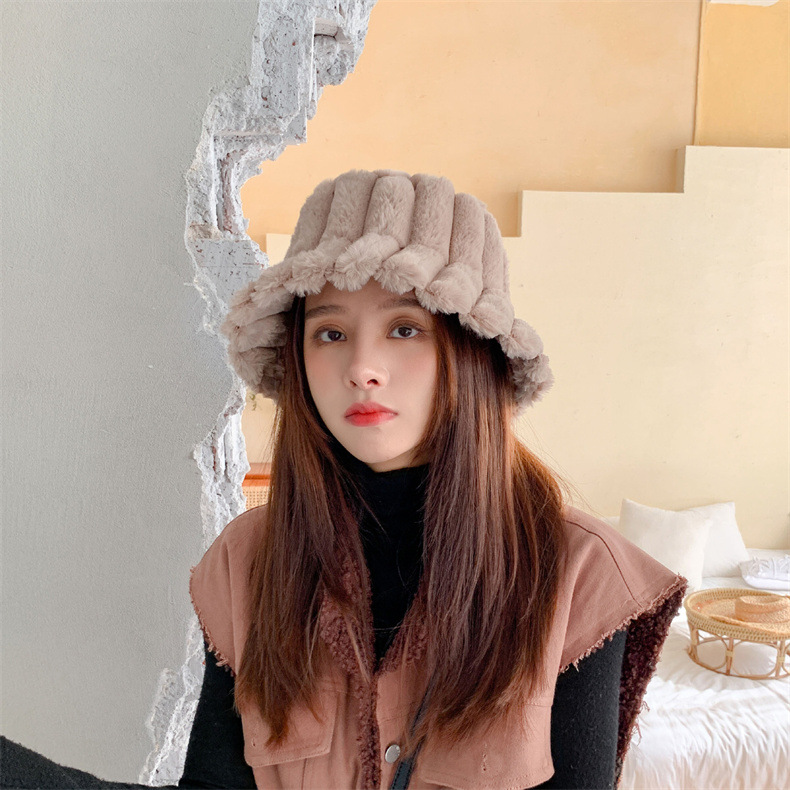 autumn and winter bucket hat women‘s new korean style rabbit plush pure color all-matching outdoor cold protection thickening warm earflaps cap