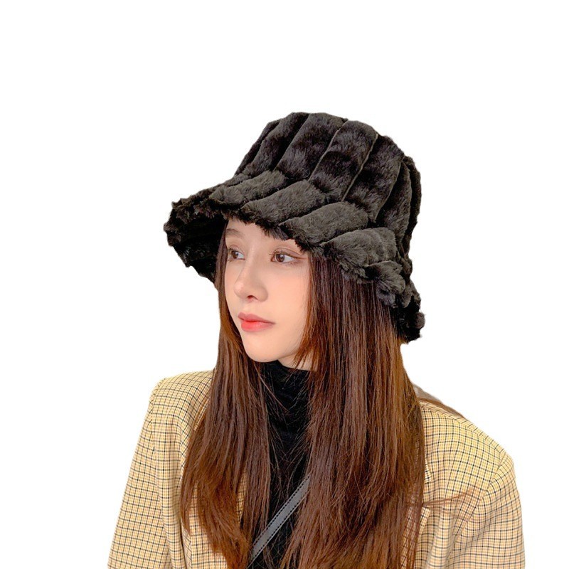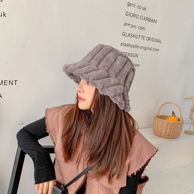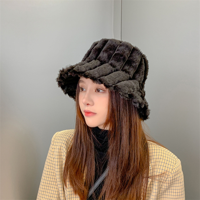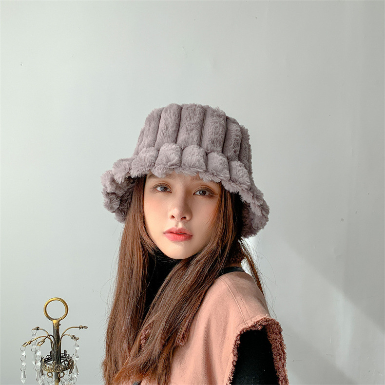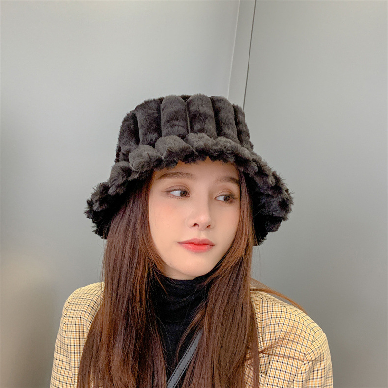 autumn and winter bucket hat women‘s new korean style rabbit plush pure color all-matching outdoor cold protection thickening warm earflaps cap