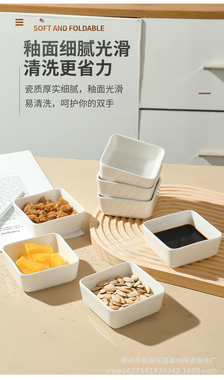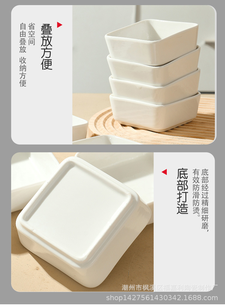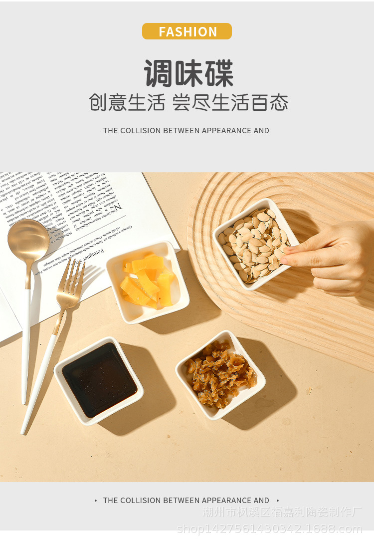 蘸料碟陶瓷方形小碟子日式味碟火锅蘸料碗商用创意烤肉调料碗小号