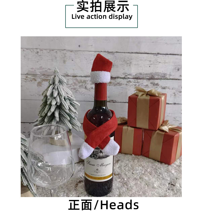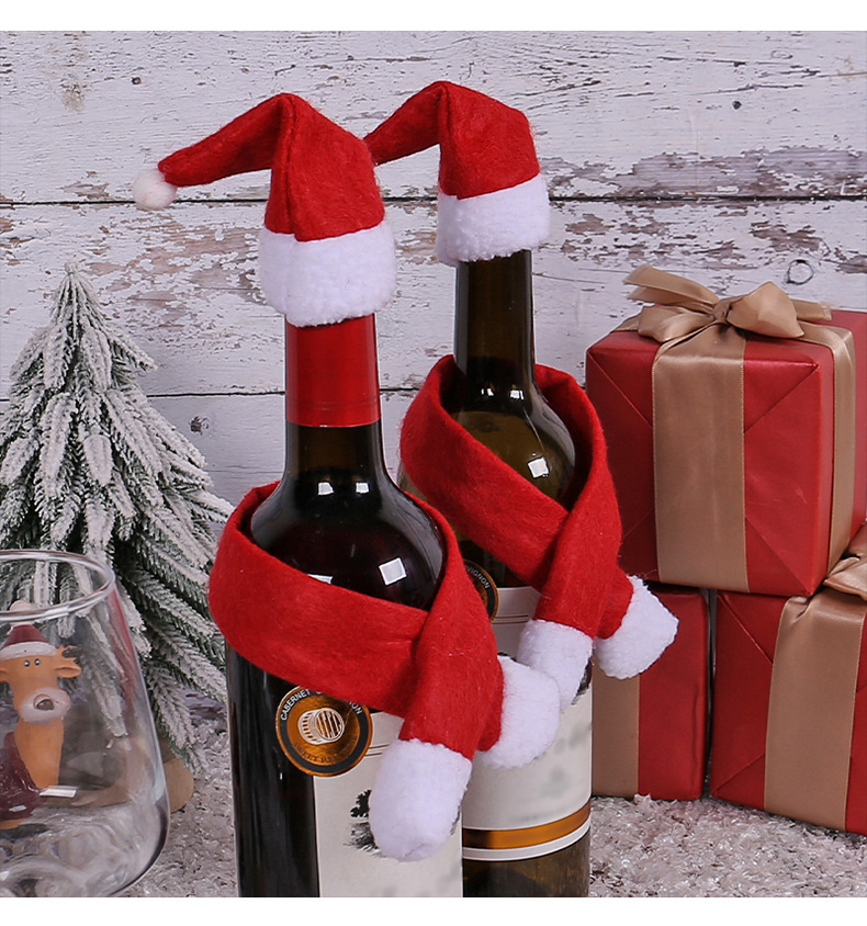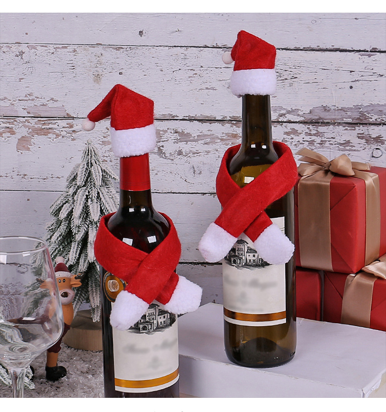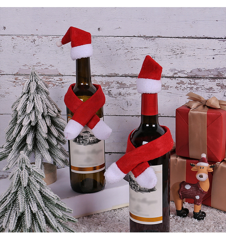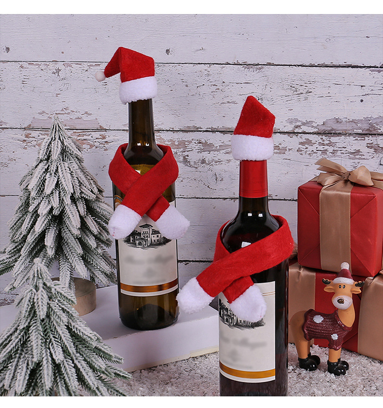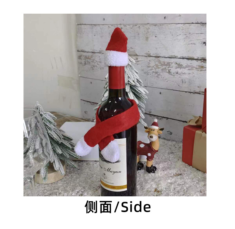 圣诞创意家居用品 无纺布围巾帽子酒瓶装饰圣诞酒瓶套装饰批发