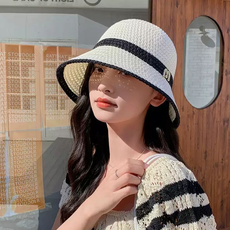 网红同款帽子女士时尚显脸小渔夫帽春夏季户外沙滩防晒透气遮阳帽
