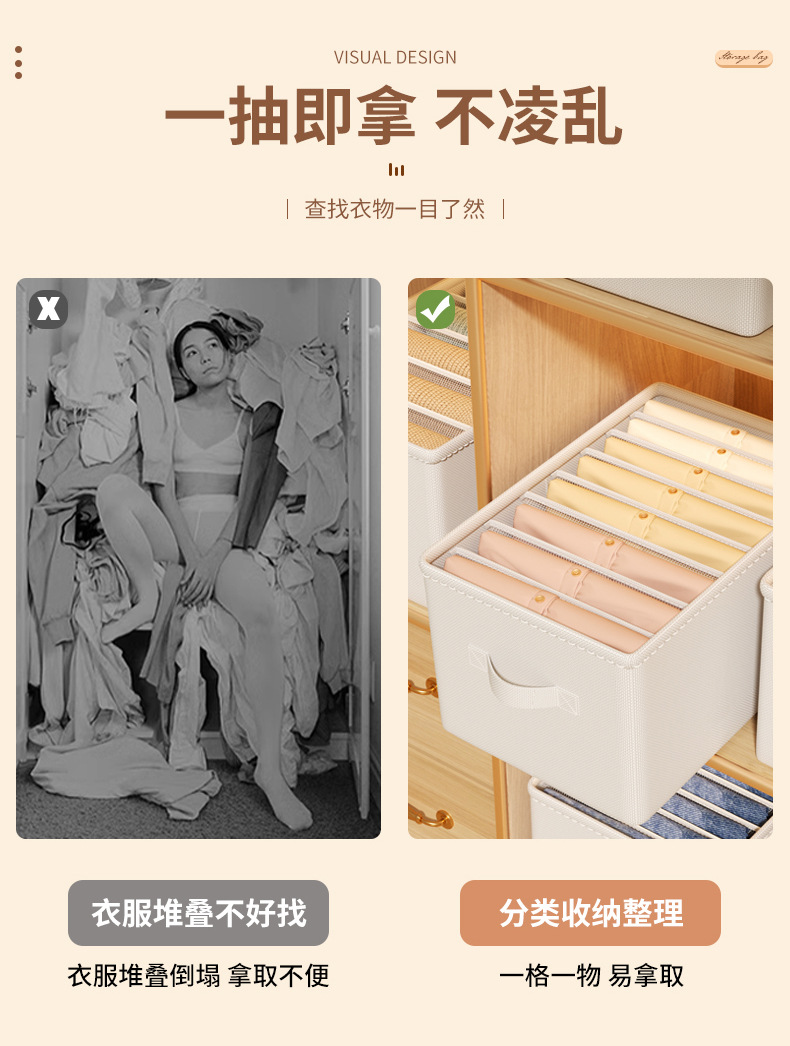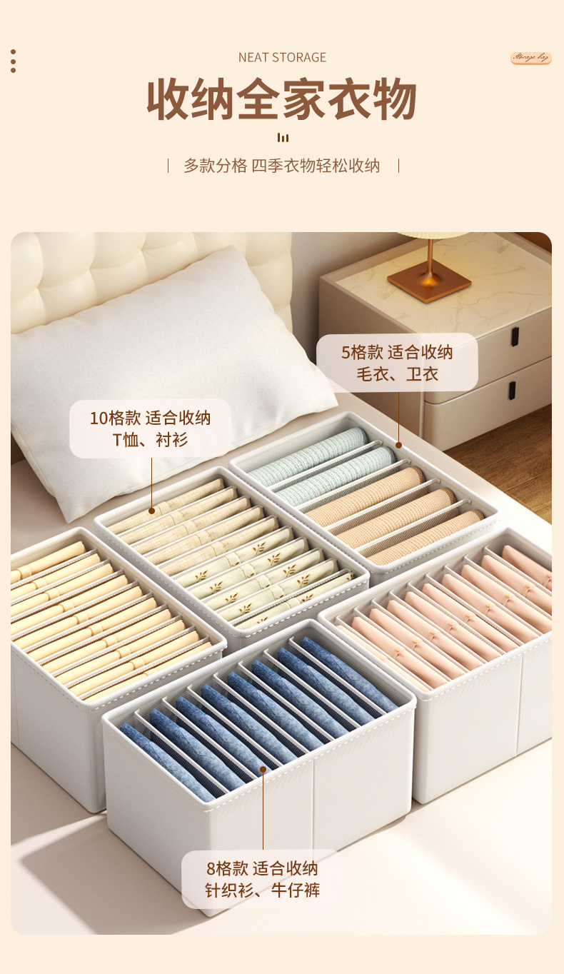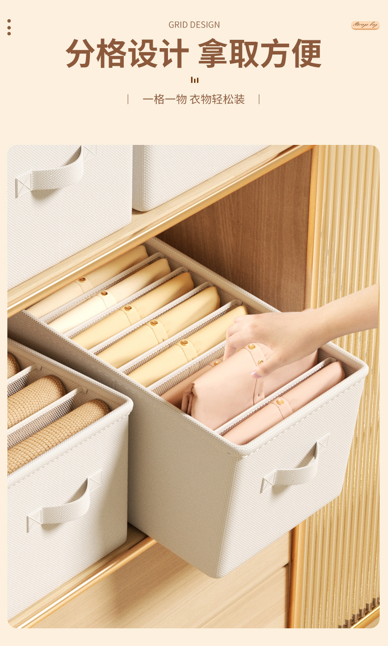 新款天山棉麻分格收纳盒衣柜可折叠衣物收纳箱布艺可水洗整理盒子