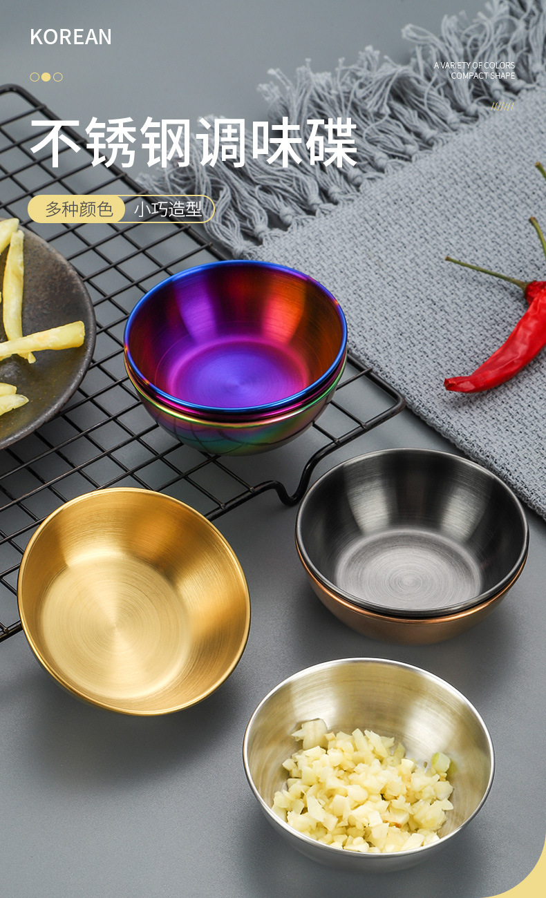 源头厂家不锈钢配菜餐碟调味碟 现货家用骨碟酱料小碟火锅蘸料碟