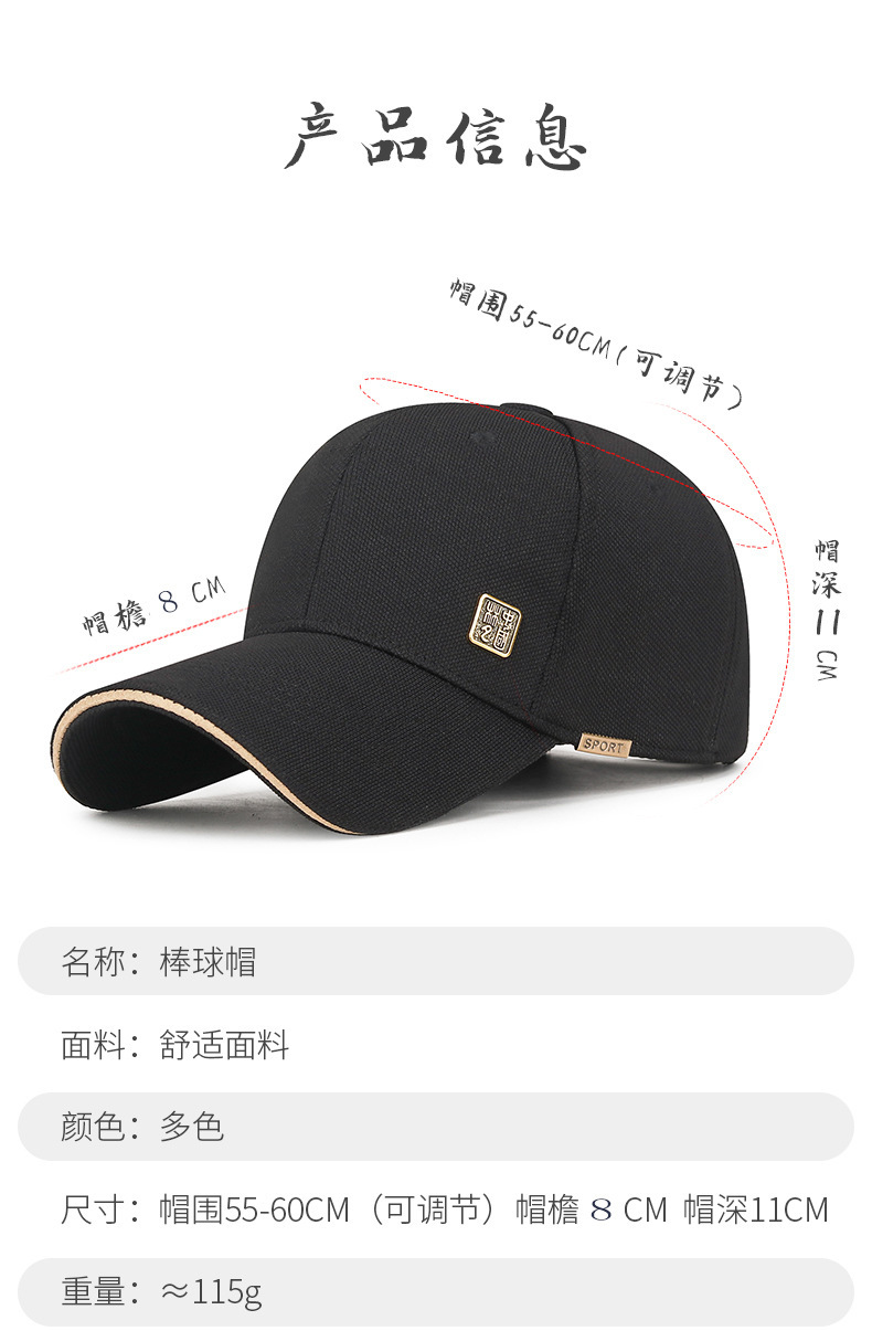 2025春季棒球帽子男新款国风硬顶鸭舌帽女潮时尚百搭显脸小鸭舌帽