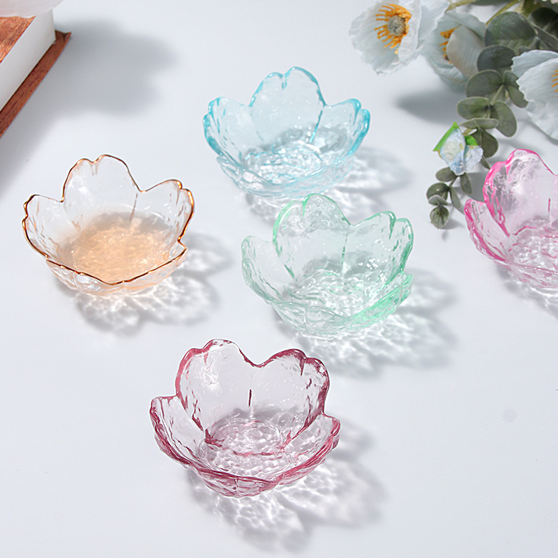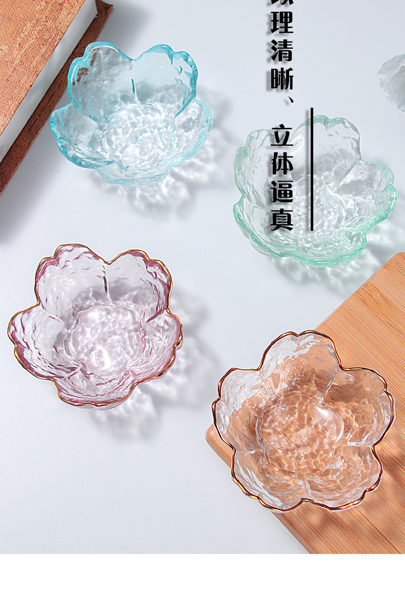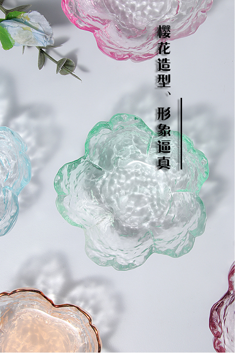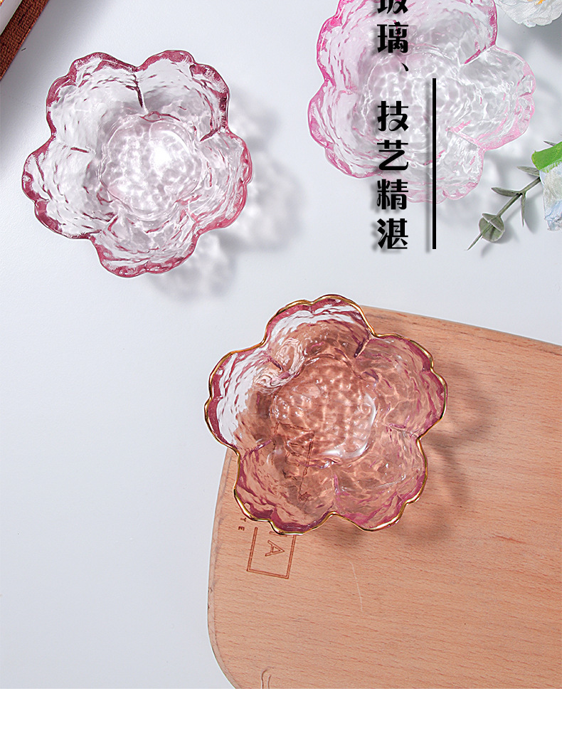 日式锤纹粉色樱花玻璃味碟酱料碟小碟子醋碟火锅烧烤调料蘸
