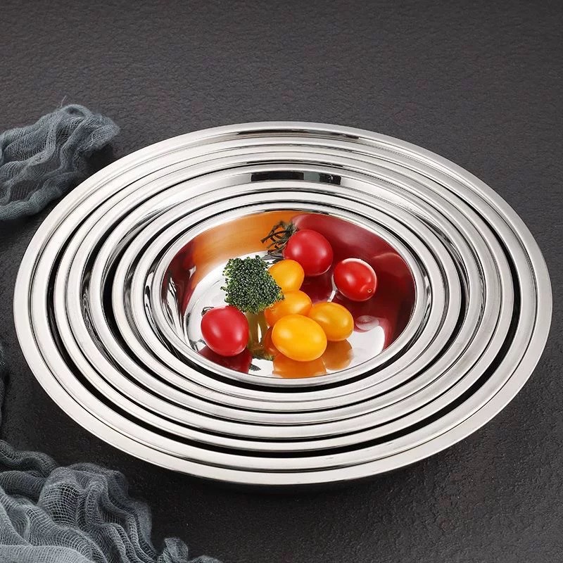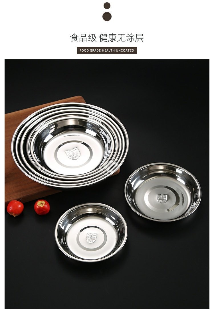 不锈钢碟子304盘子圆盘平盘加厚菜盘幼儿园食堂调味碟餐盘小圆碟