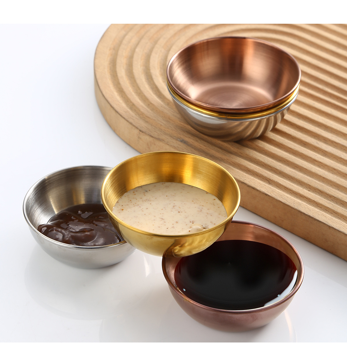 不锈钢蘸料碟厨房家用金色酱料调味料酱油小碟子