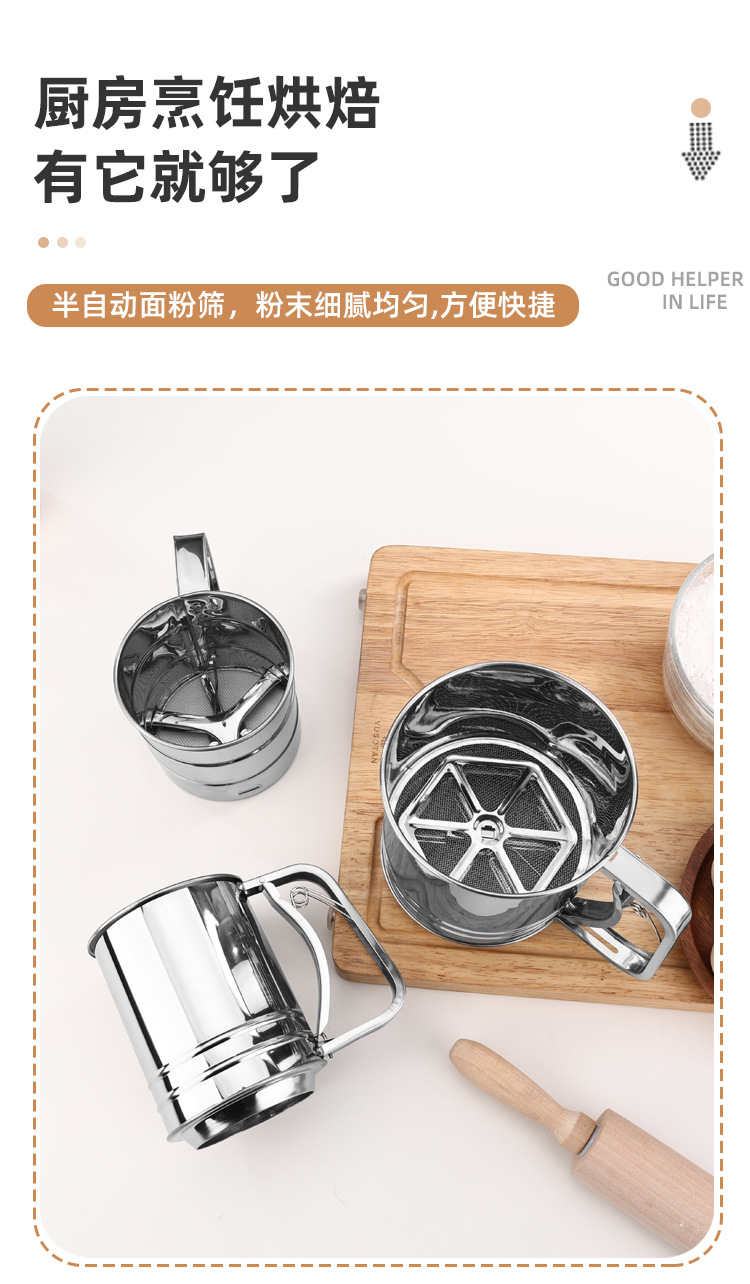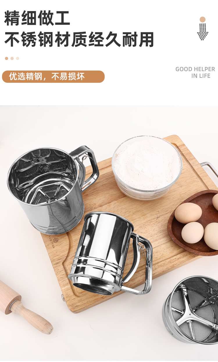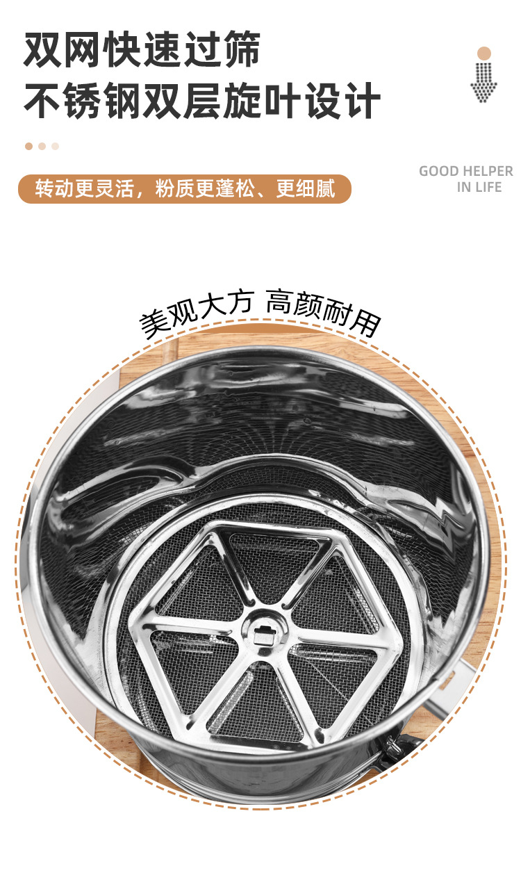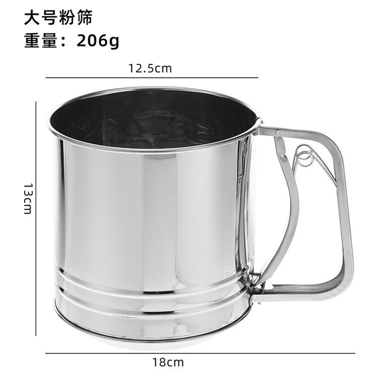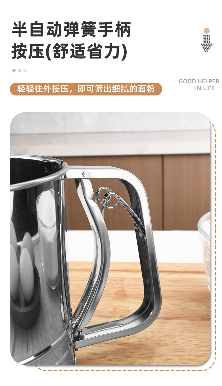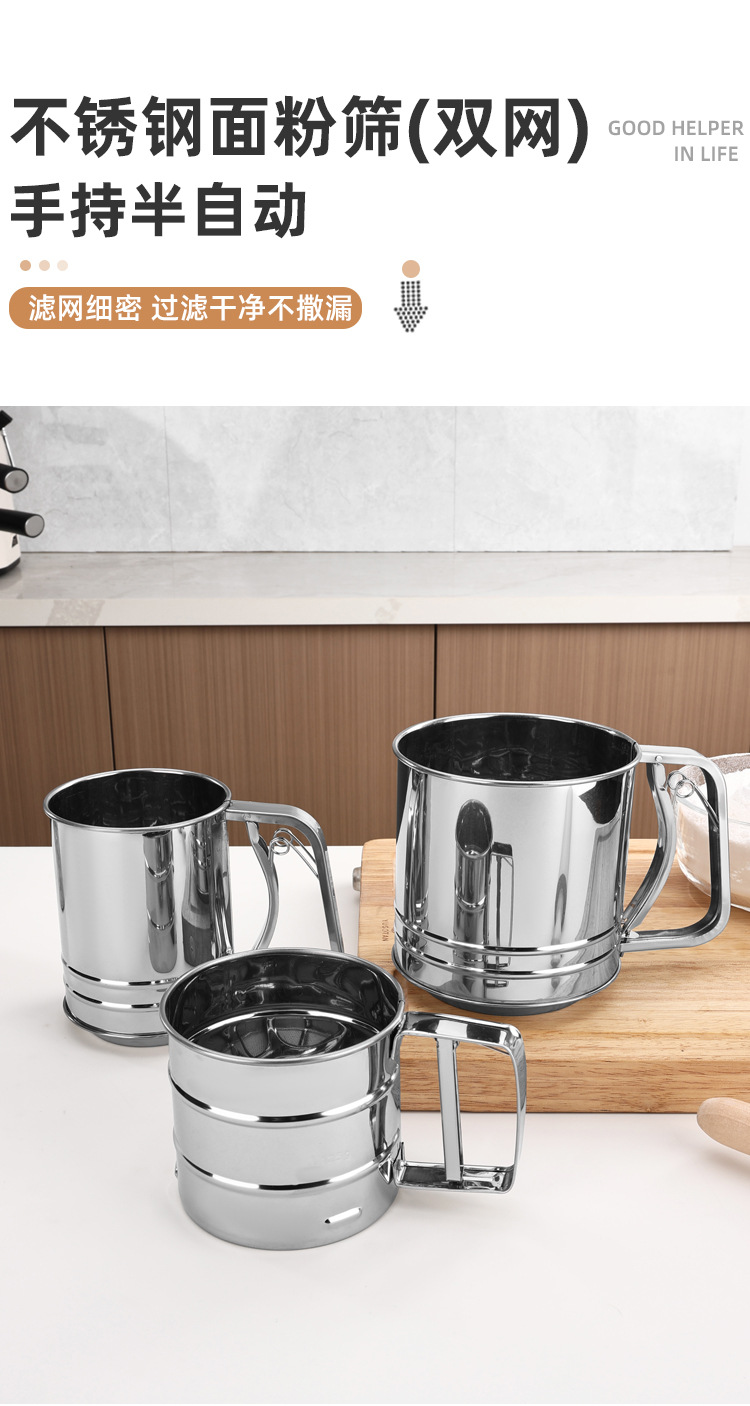 不锈钢面粉筛手提带柄半自动按压式双层过滤网家用筛子烘培糖粉筛
