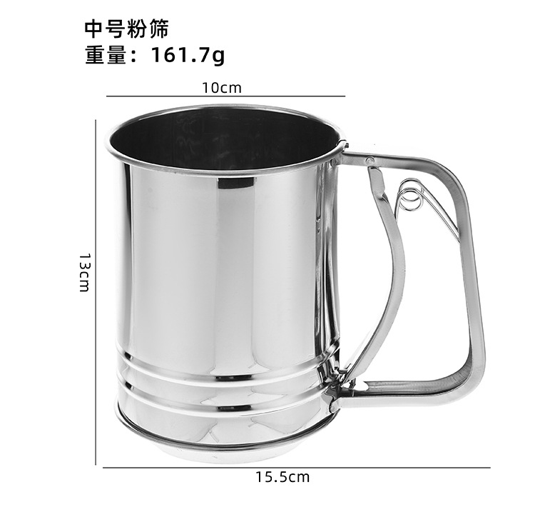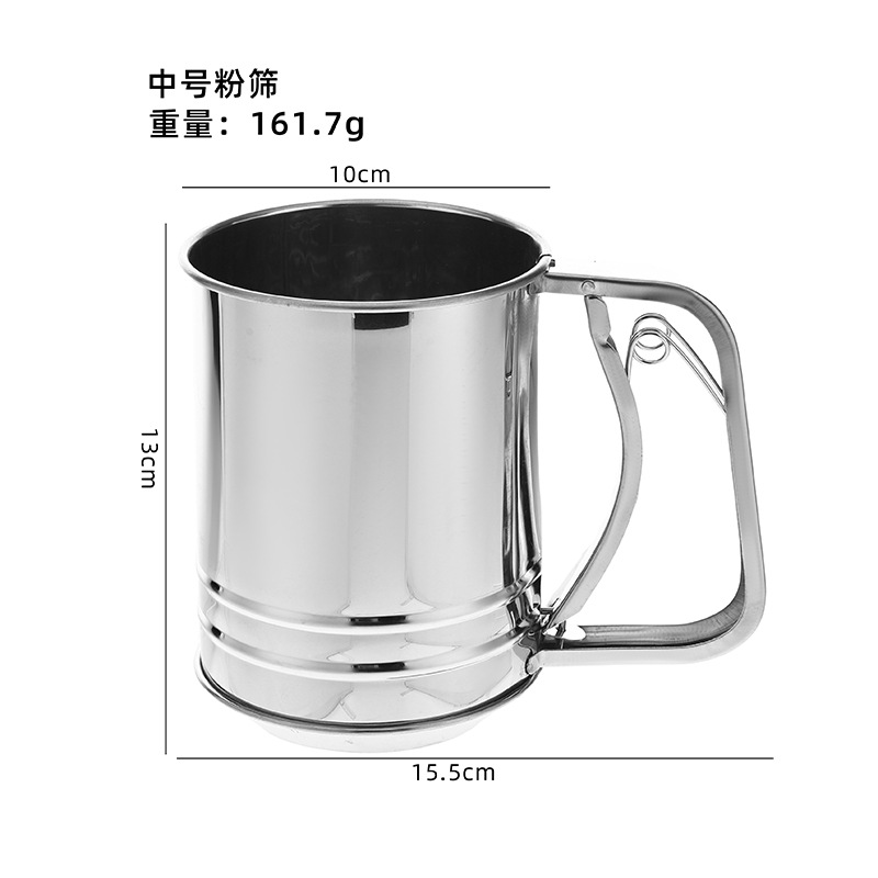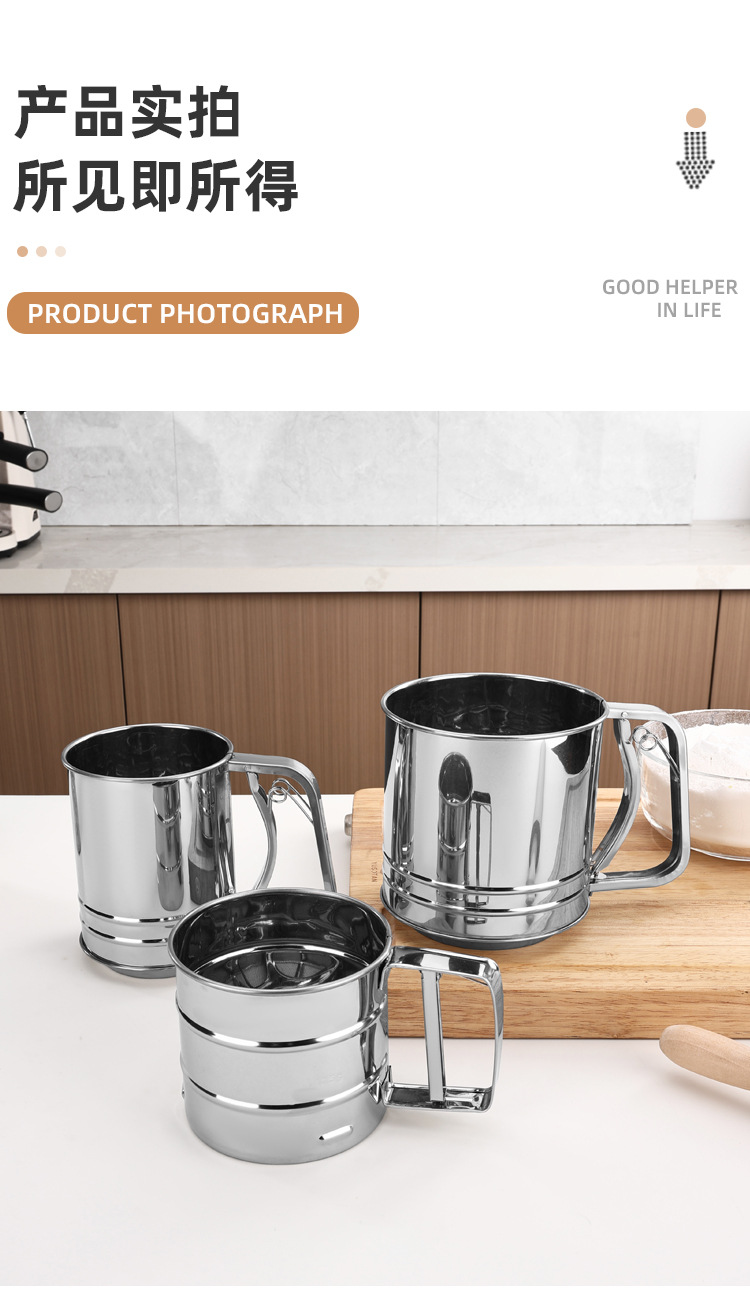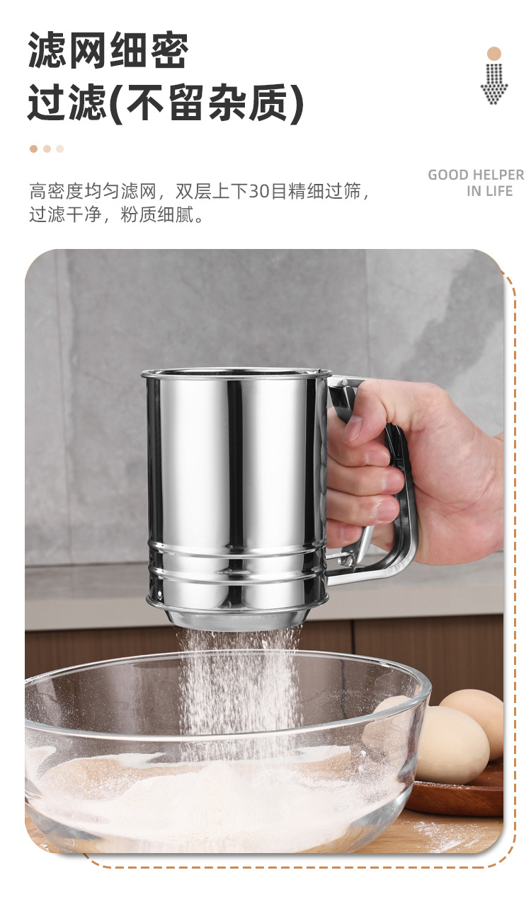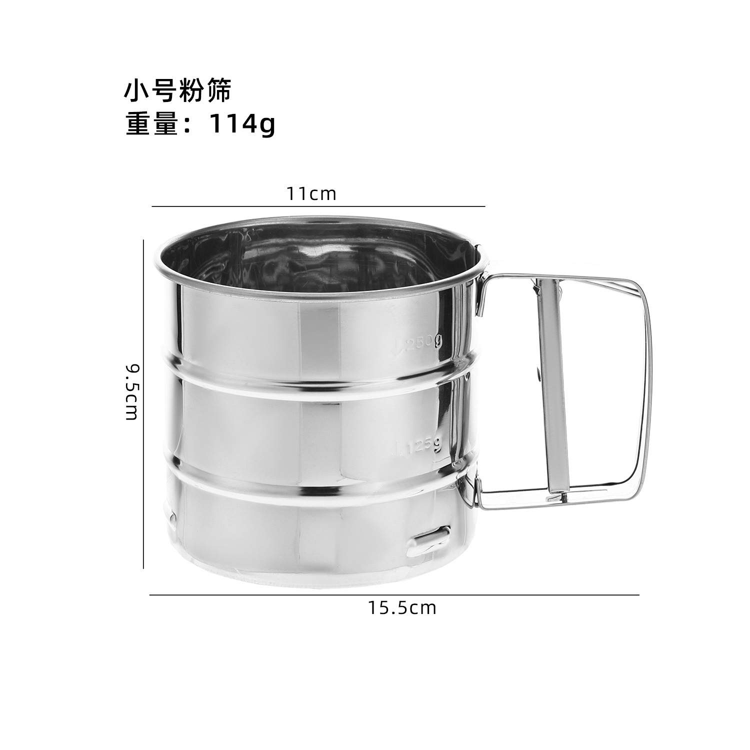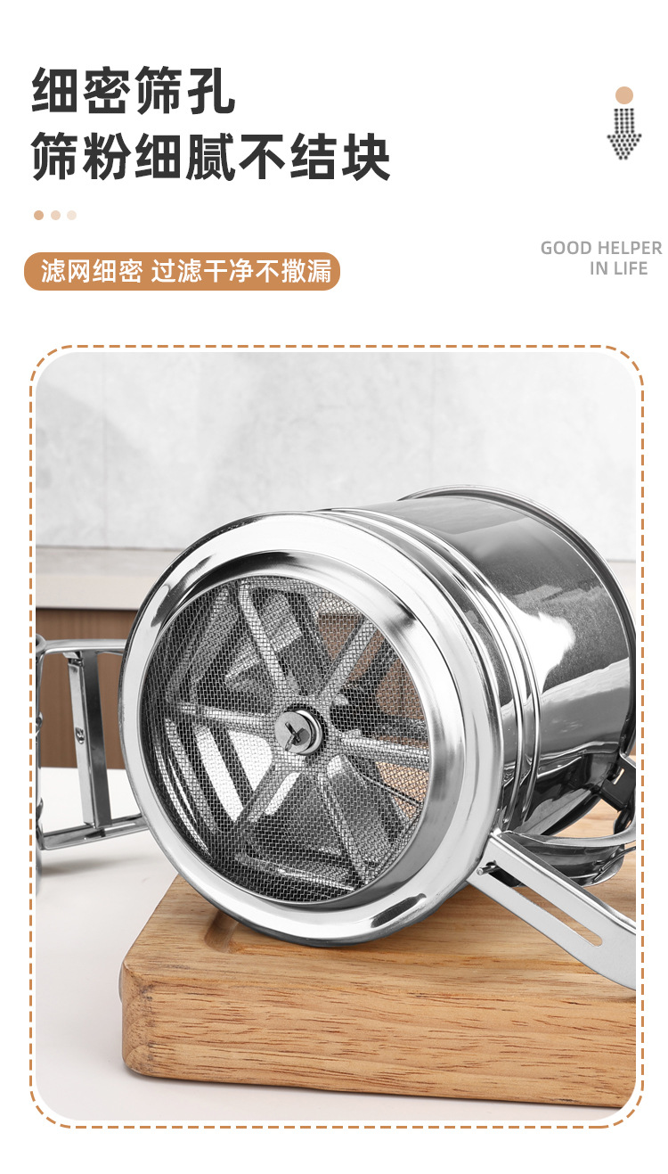 不锈钢面粉筛手提带柄半自动按压式双层过滤网家用筛子烘培糖粉筛