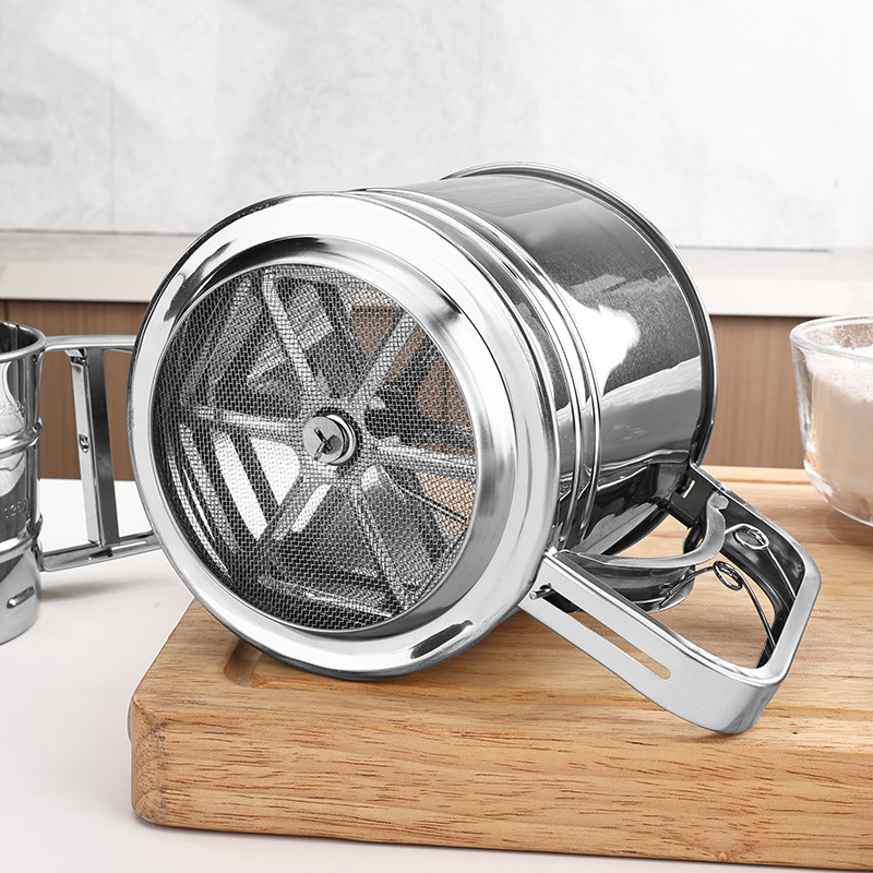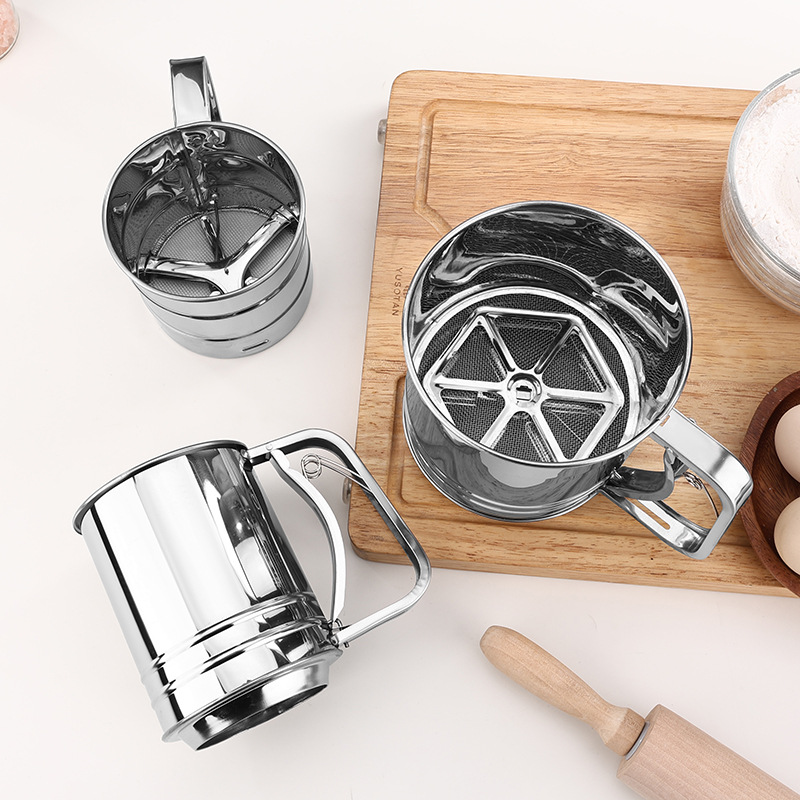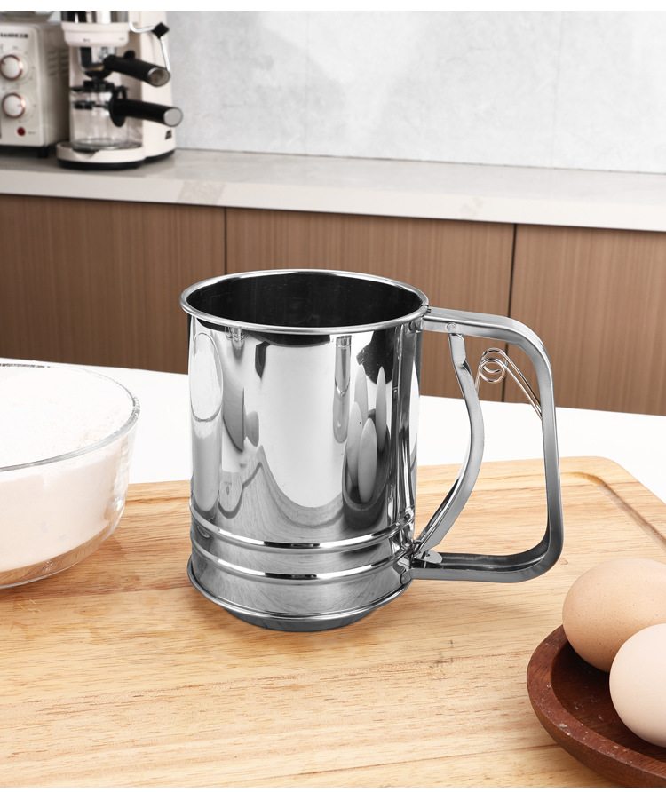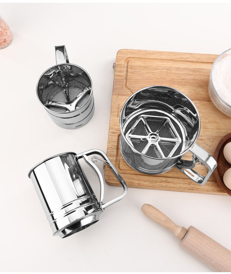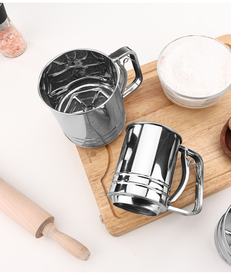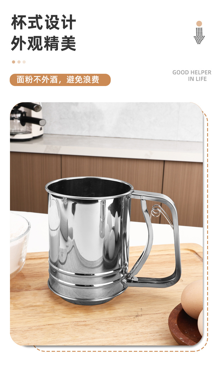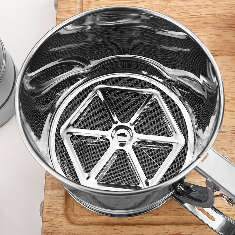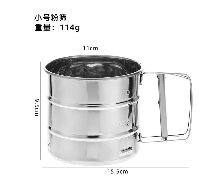 不锈钢面粉筛手提带柄半自动按压式双层过滤网家用筛子烘培糖粉筛