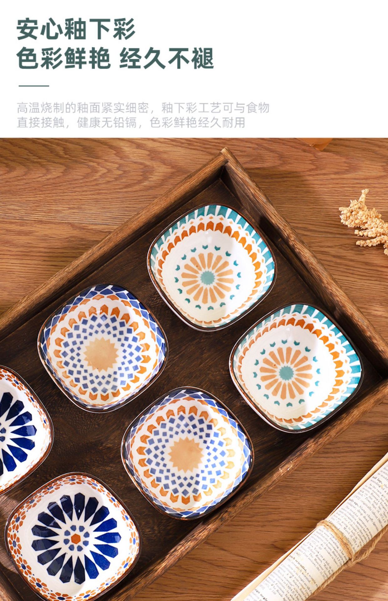 波西米亚陶瓷味碟复古日式家用酱油小吃碟子积分兑换礼品餐具套装